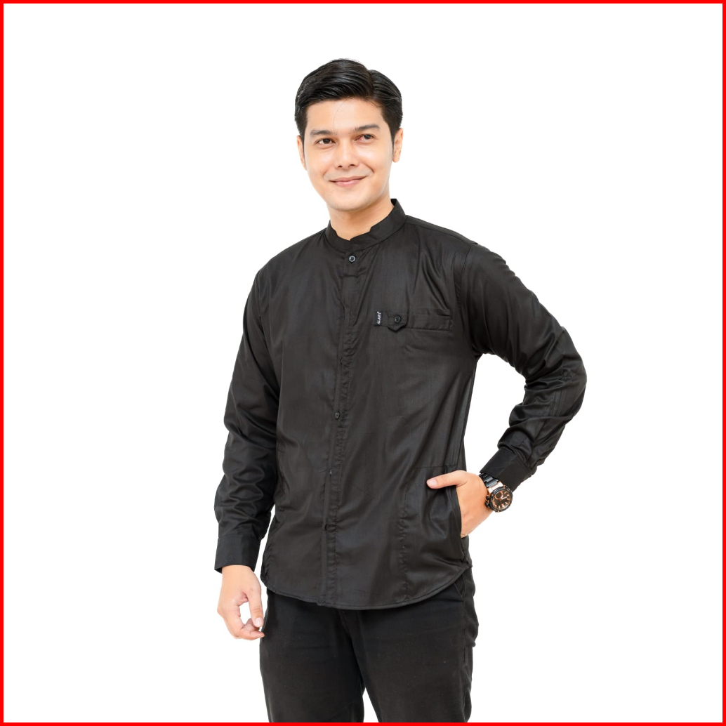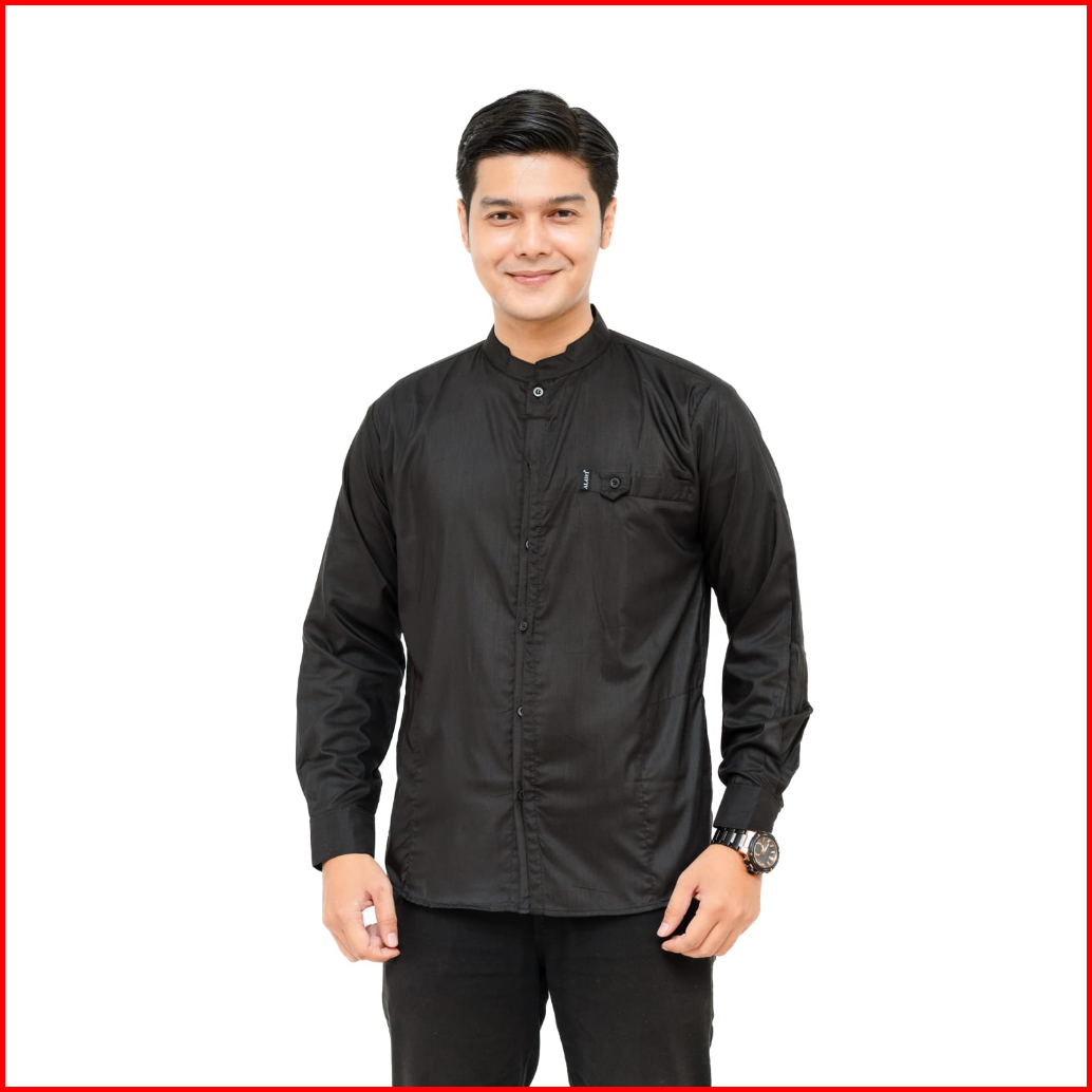 Elmoza - Baju Koko Pria Dewasa Lengan Panjang Albino Warna Hitam