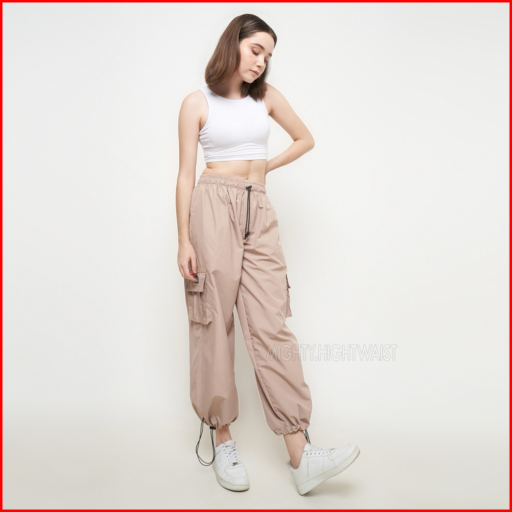 Free Pouch- Celana Baggy Cargo Gombrang Komprang Amerikan Drill Panjang Streetwear Korean Style Wanita Pria Highw