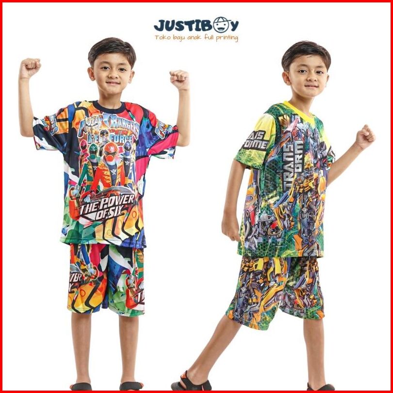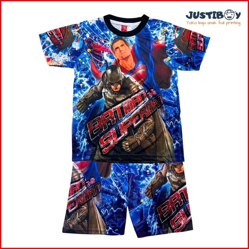 Cuci Gudang Setelan Baju Anak Laki Laki Gambar Superhero Lengan Pendek 2 - 11 Tahun