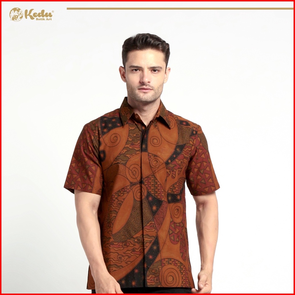 Kedu Batik - Kemeja Batik Katun Lengan Pendek Mega Wajik Hitam Hem Pria Formal