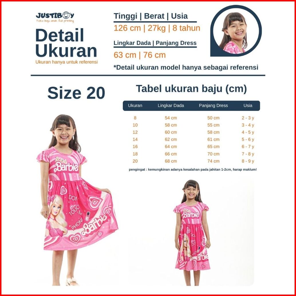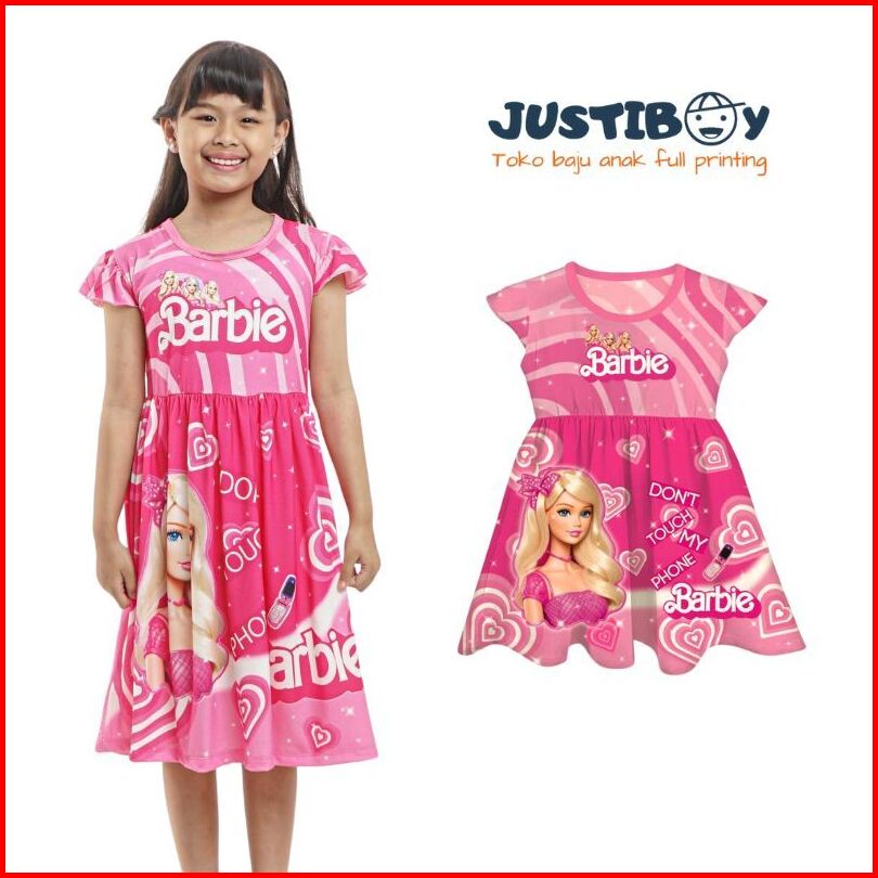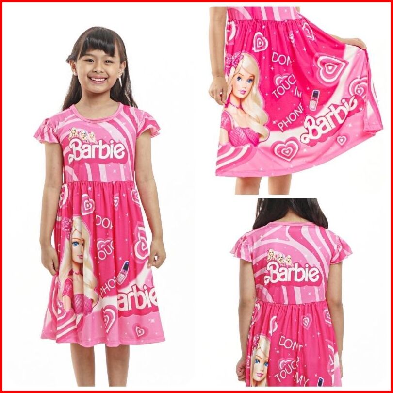 Dress Anak Barbie Lengan Pendek Baju Anak Dress Perempuan Barbie Umur 2 - 9 Tahun Abel