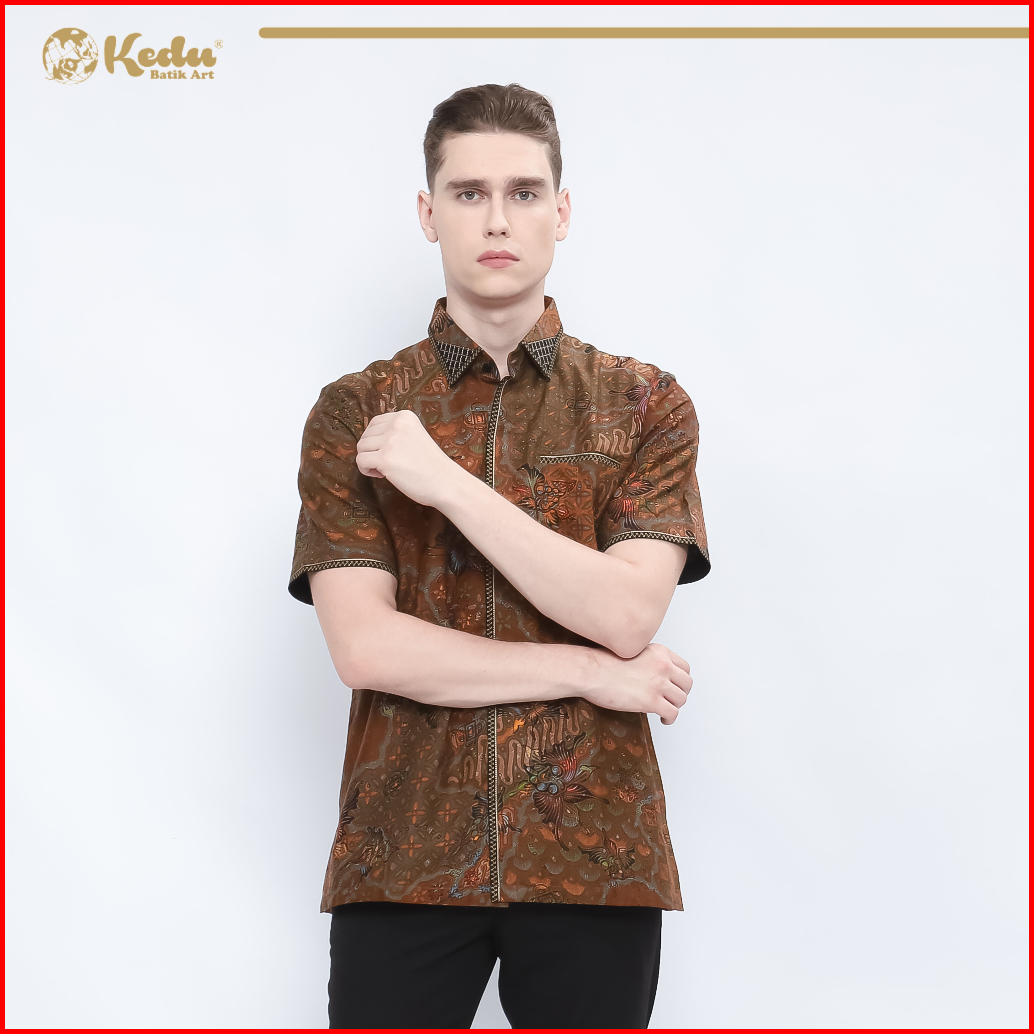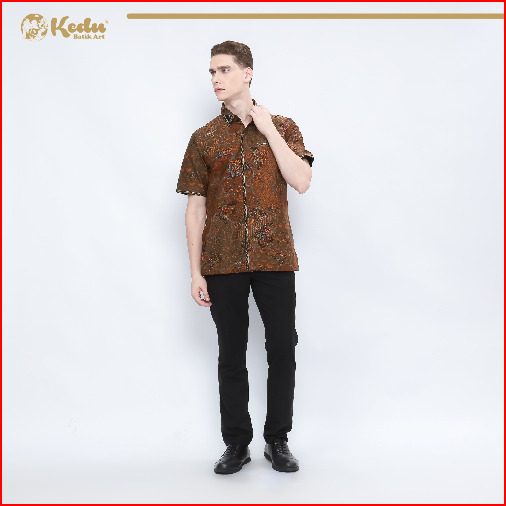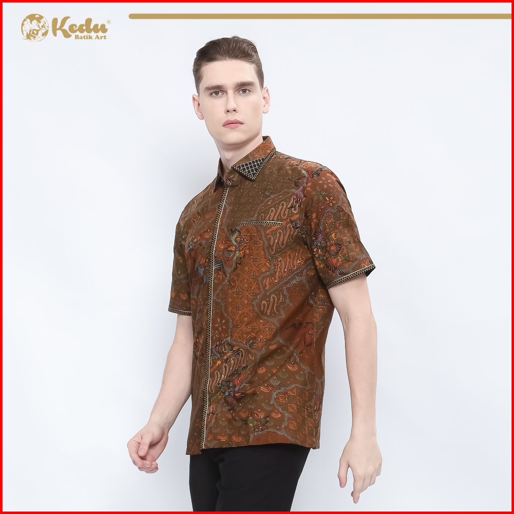 Kedu Batik - Kemeja Batik Katun Smock Lengan Pendek Sophia Coklat