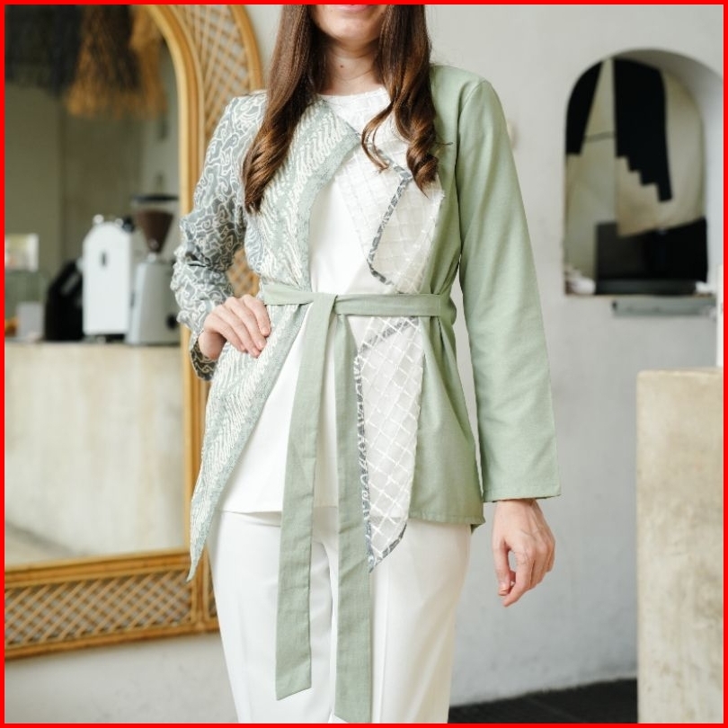 Atasan Tenun Wp 132 Sage New Blus Blouse Baju Kerja Wanita Tenun Modern