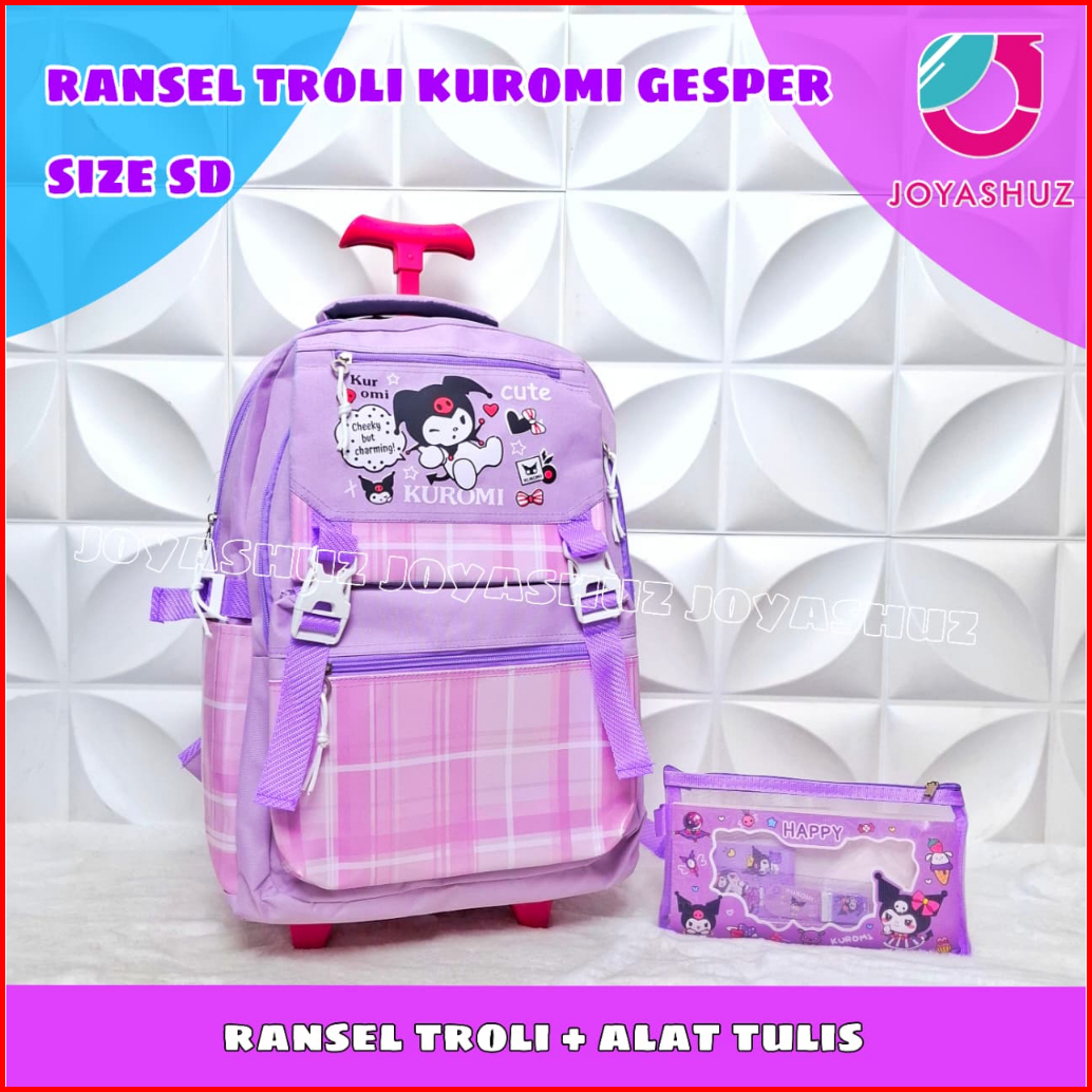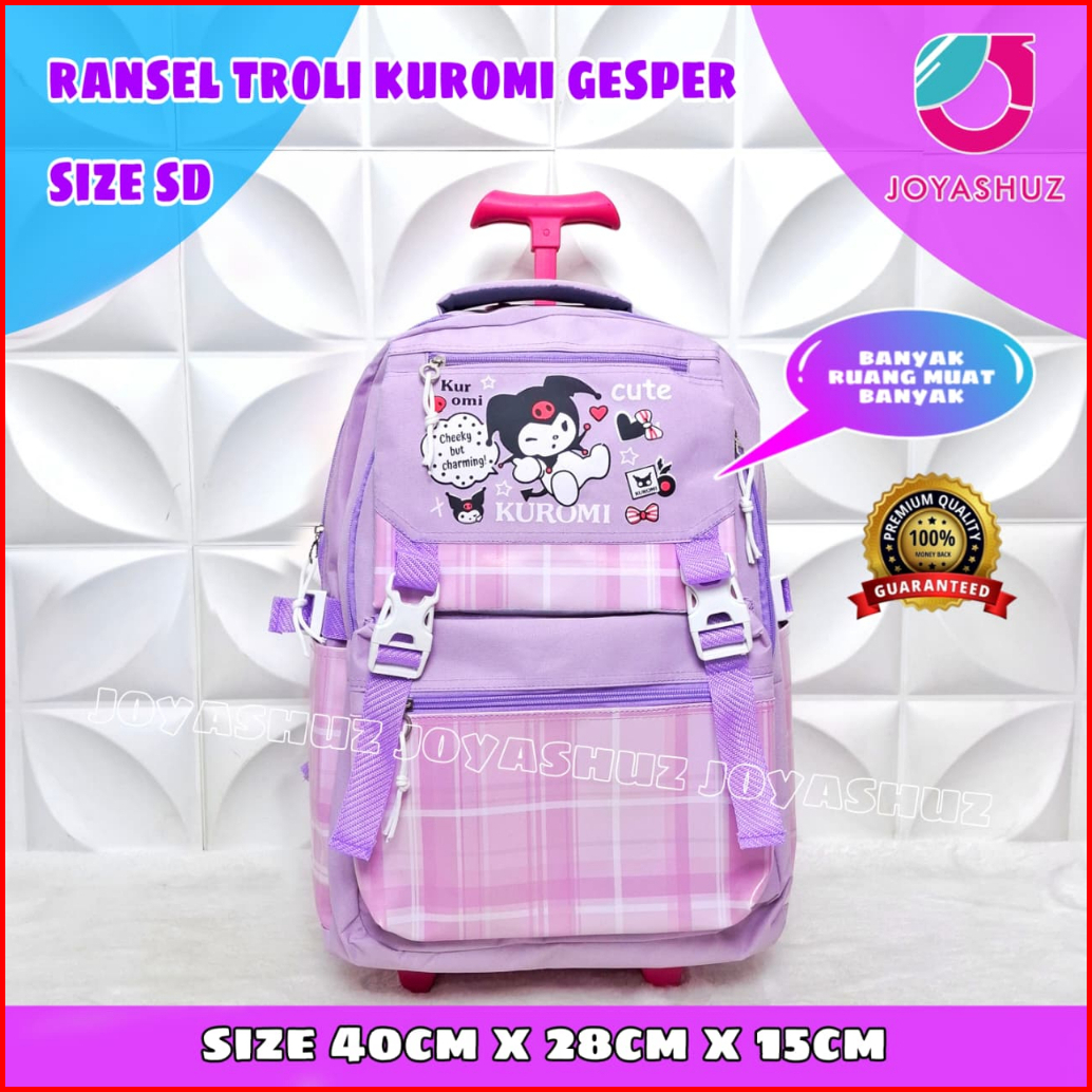 Tas Sekolah Troli Kuromi Anak Perempuan Sd - Ransel Dorong Anak Perempuan - Joyashuz