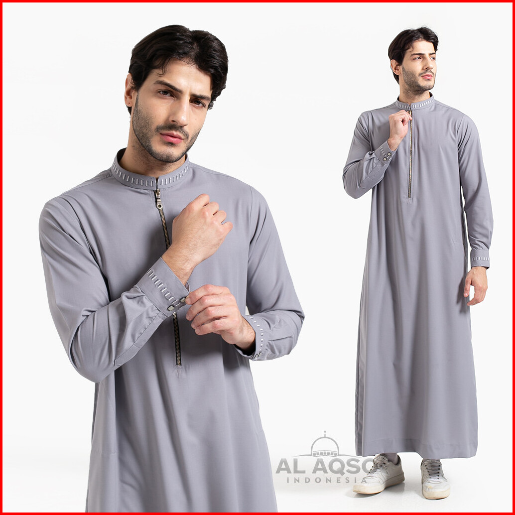 Al Aqso Tencel Jubah Reguler Thobe Gamis Pria Muslim Dewasa Premium Navy Abu Hitam Lengan Panjang Jubah Bizar