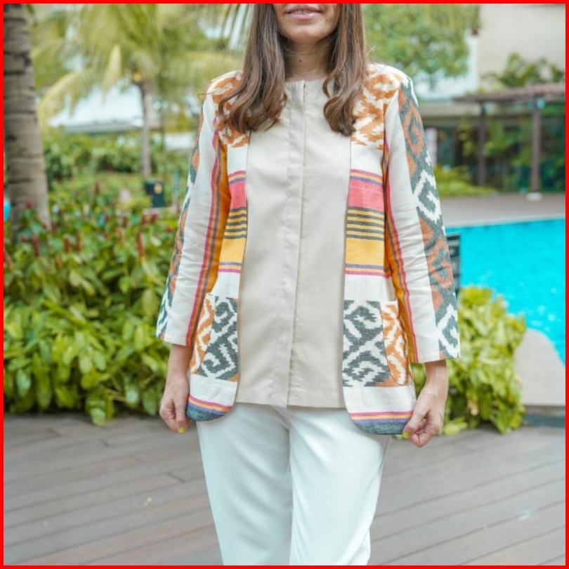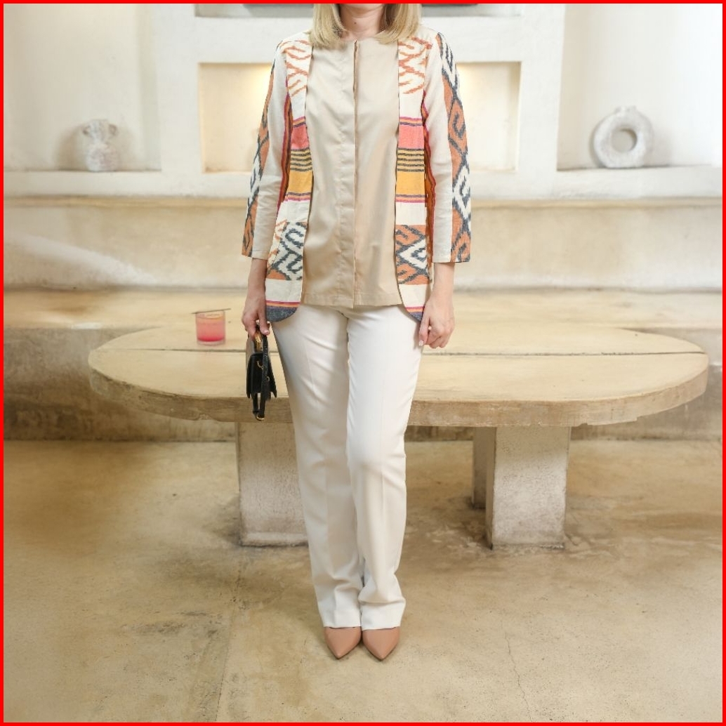 Atasan Tenun Kombinasi B 27 Blus Blouse Baju Kerja Atasan Modern