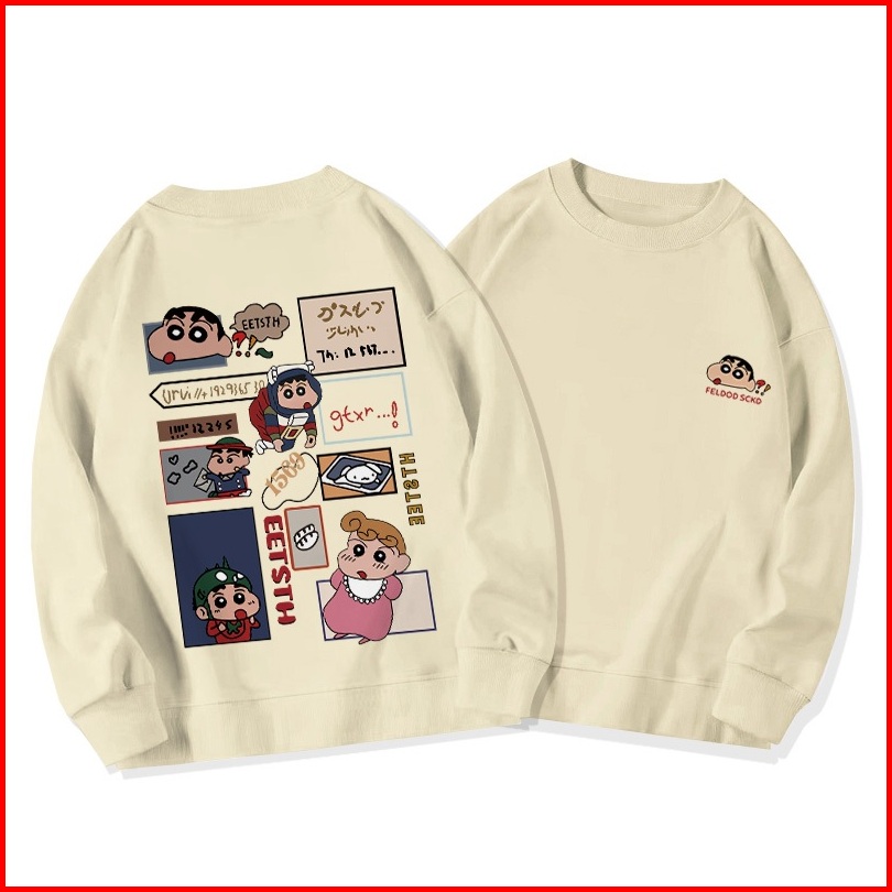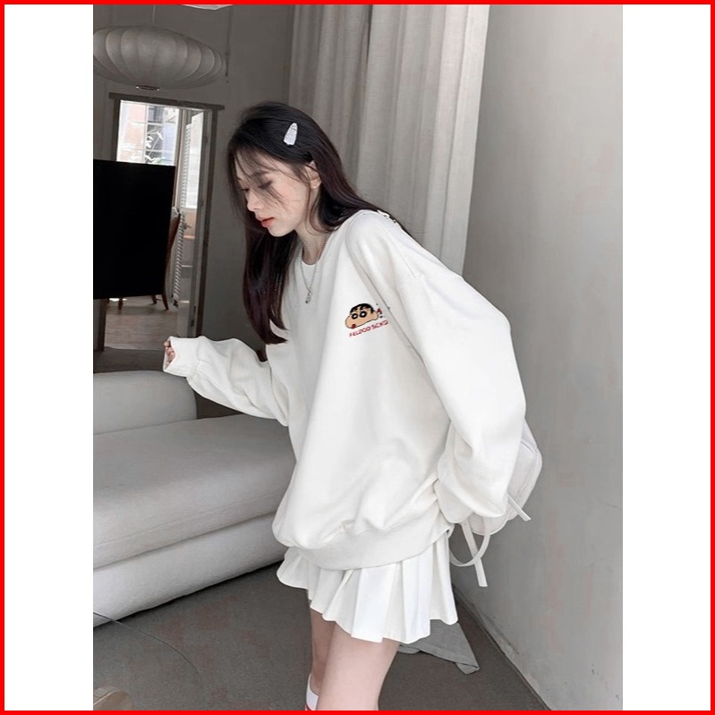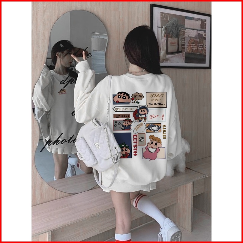 Sweater Oversize Wanita Animasi Crayon Shin-chan Lengan Panjang Model Versi Korea Baju Sweater Wanita Korean Style Loose