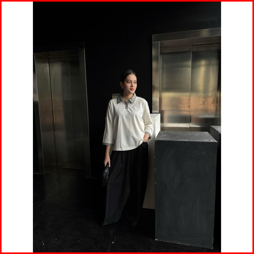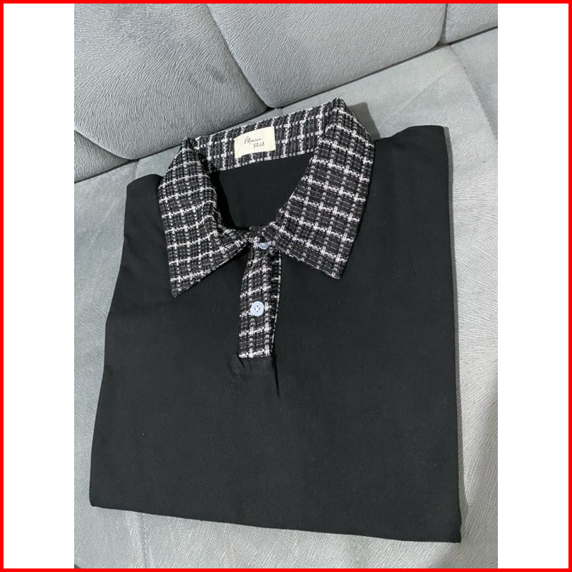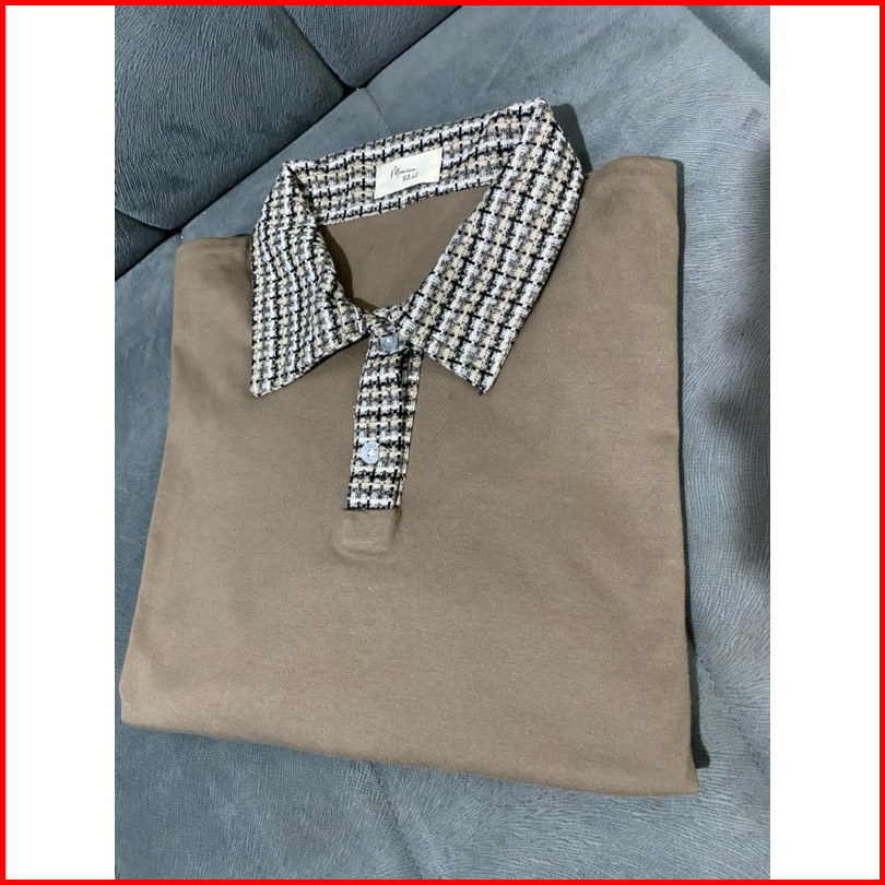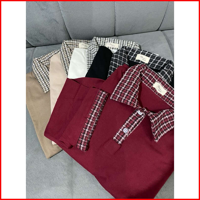 Alee Polo Tweed Blouse Atasan Wanita Exclusive Top Casual By Monicathelabel