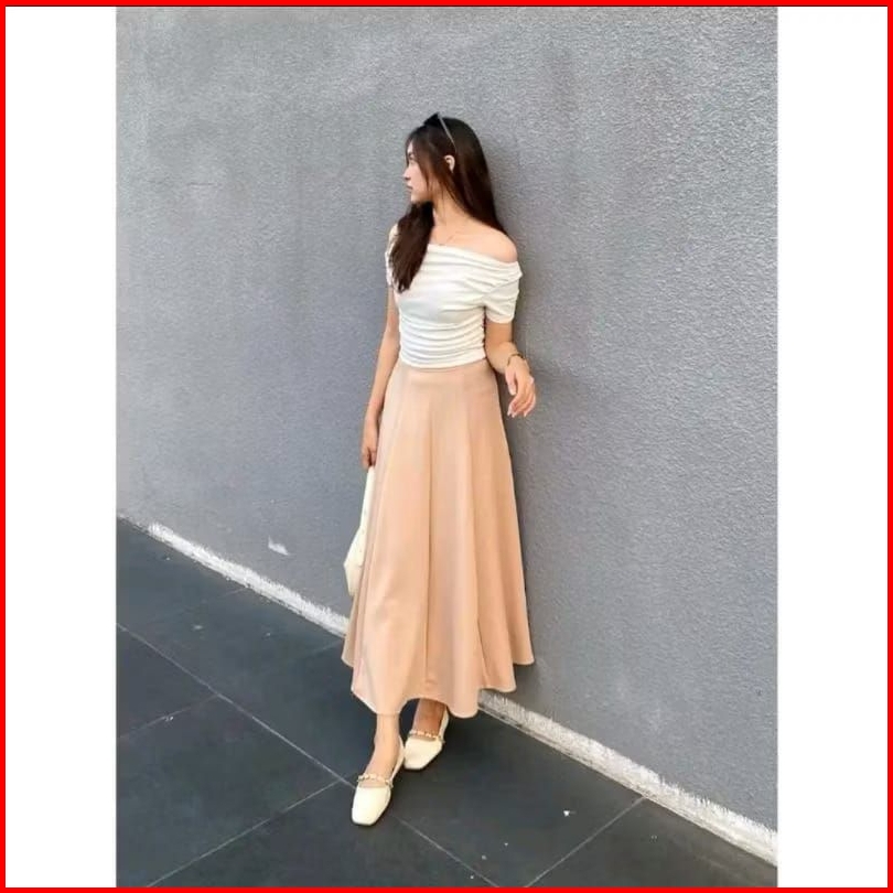 Audy Skirt - Korean Loose Maxi Skirt Rok Wanita Anti Kusut Premium Polyester - Rok Flare Wanita - Rok Basic Premium Scub