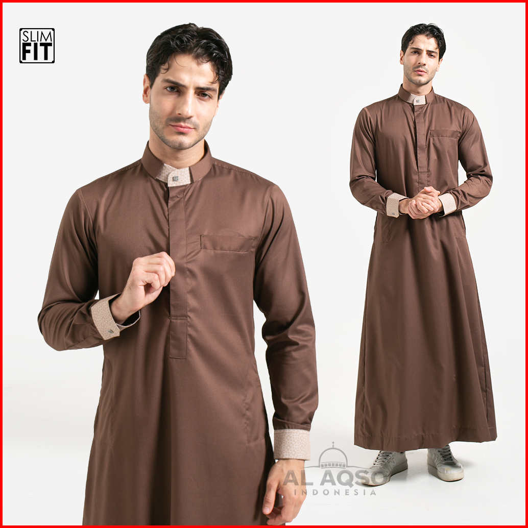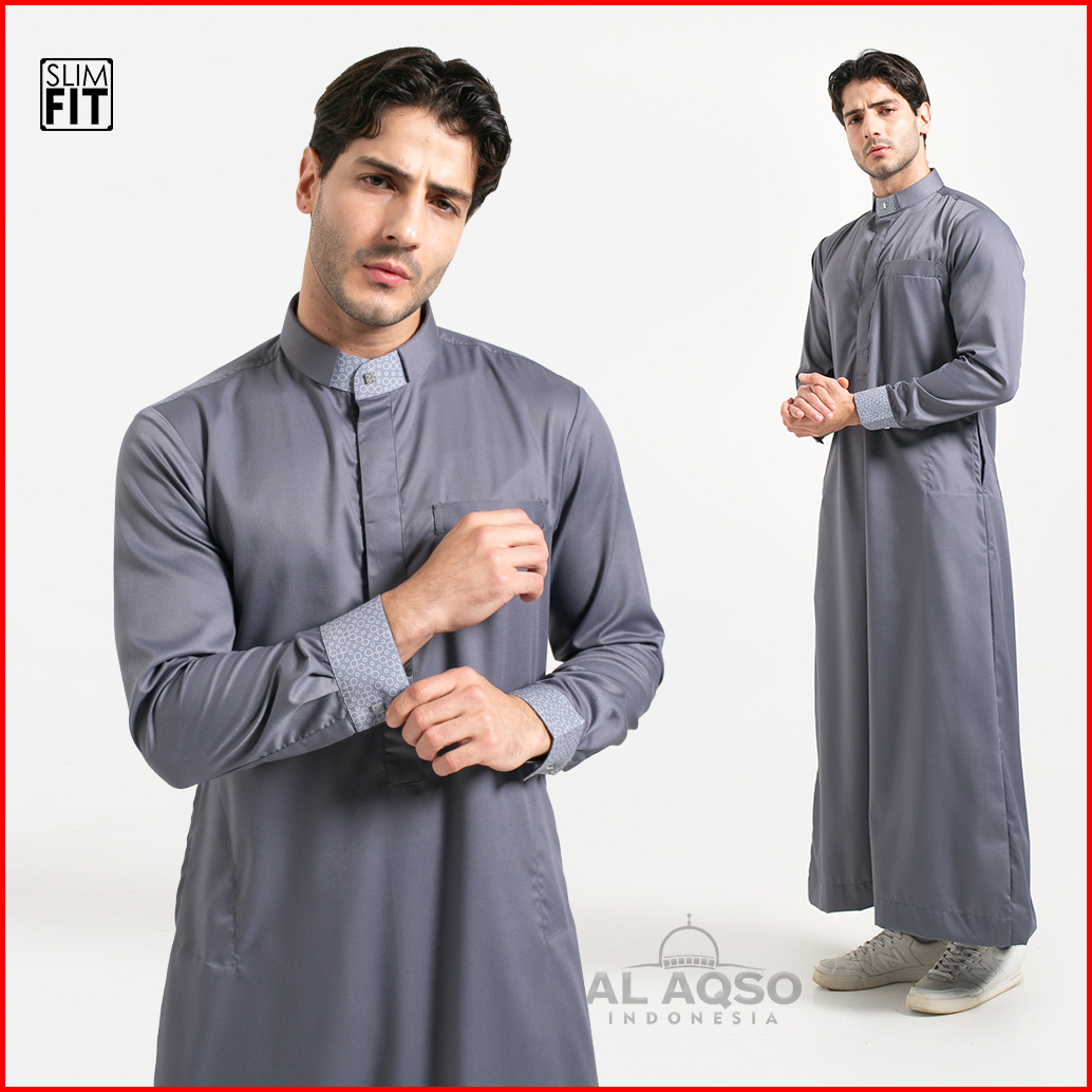 Al Aqso Fodu Jubah Slimfit Thobe Gamis Pria Muslim Dewasa Premium Printing Manset Lengan Panjang Jubah Azlan