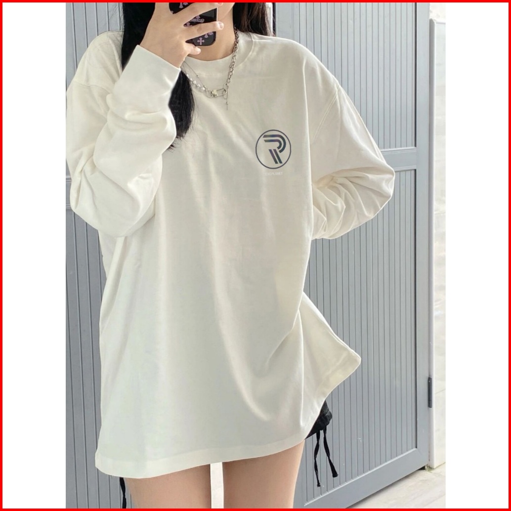 Kaos Oversize Lengan Panjang Wanita Cetakan Retro Simple Letters Style Baju Kaos Lengan Panjang Wanita Terbaru Kekinian