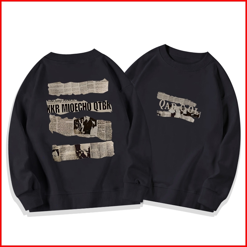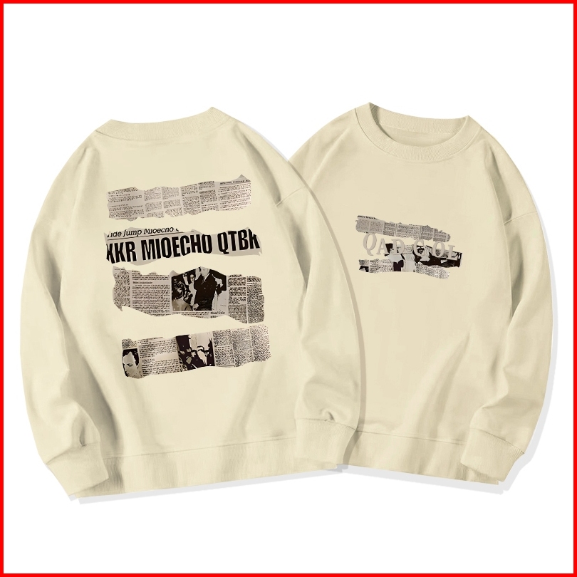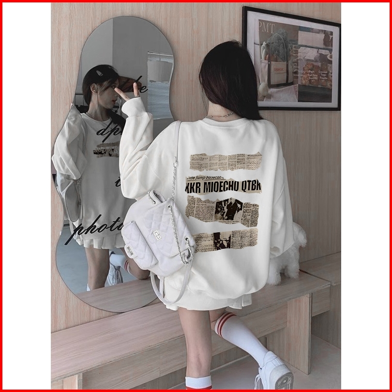 Sweater Oversize Wanita Lengan Panjang Versi Korea Surat Kabar Lama Huruf Inggris Dicetak Baju Sweater Wanita Korean Sty