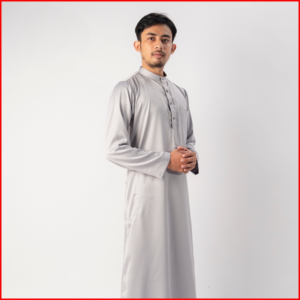 Khaf97 Al-birru Baju Muslim Jubah Pria Dewasa Lengan Panjang Warna Silver Katun Premium