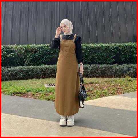 Cindy Overall Cross Katun Drill Jumpsuit Rok Wanita Baju Kodok Motif Polos Viral
