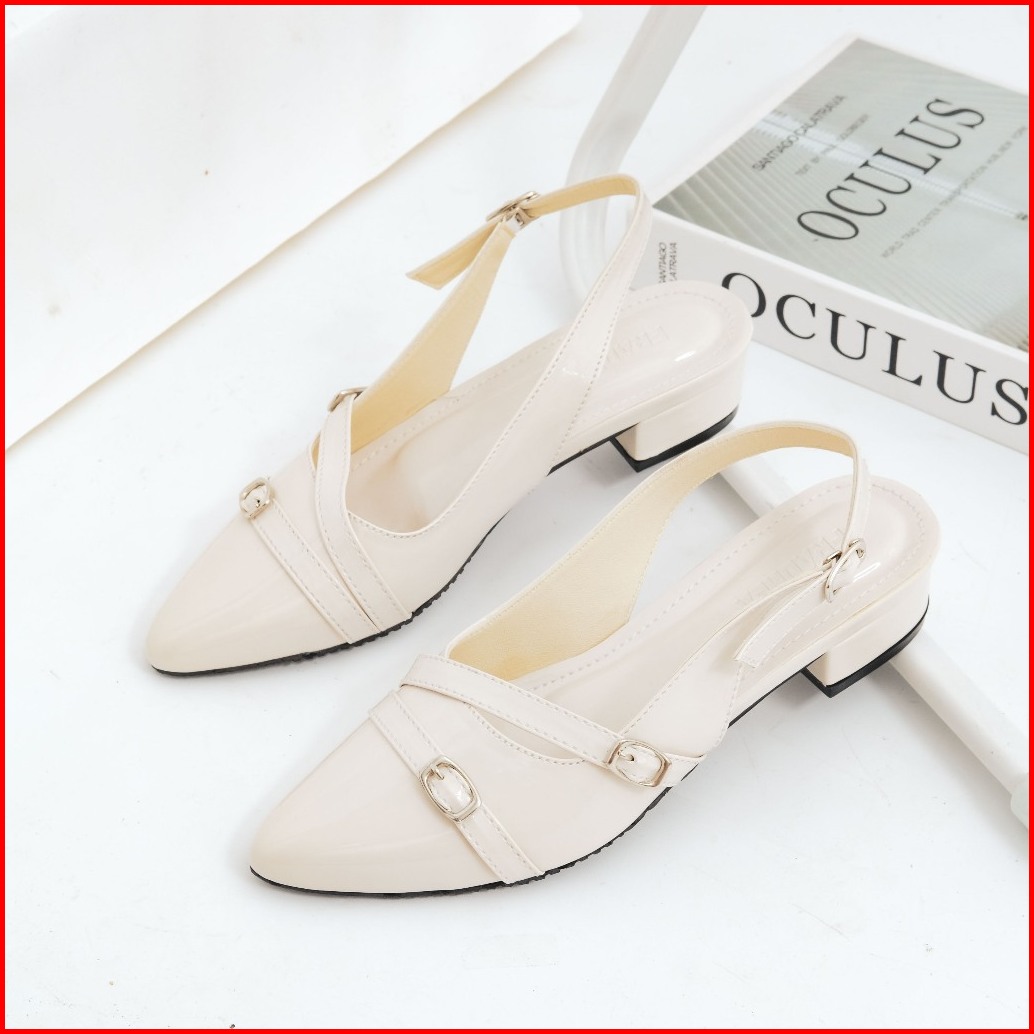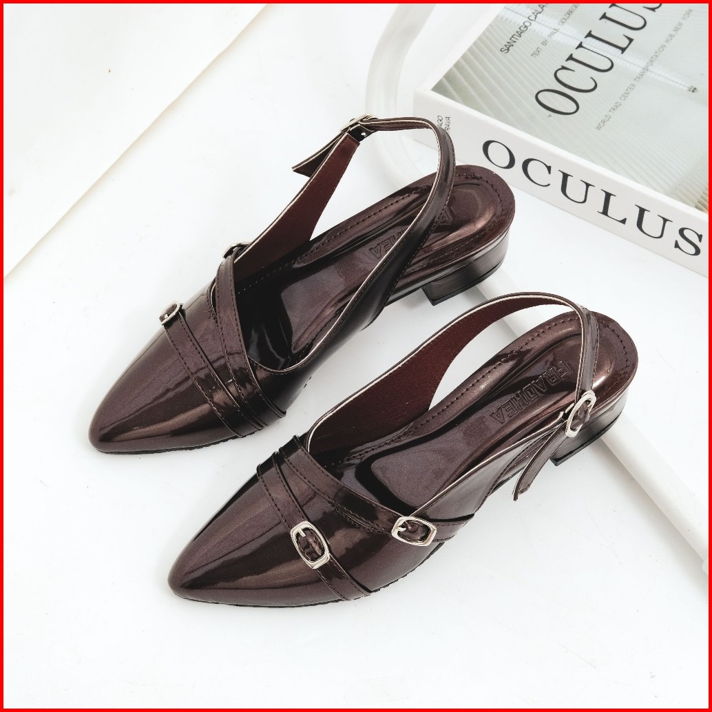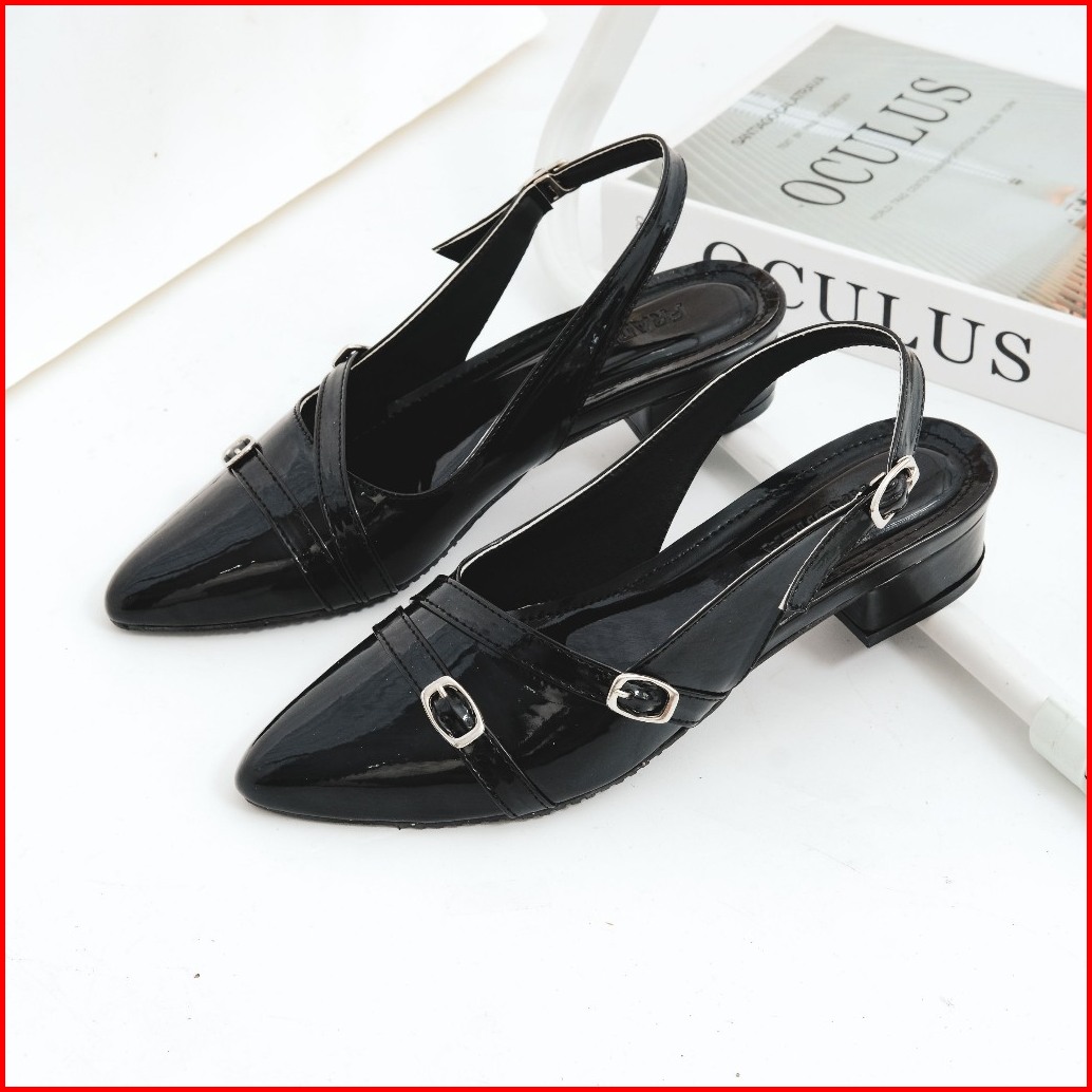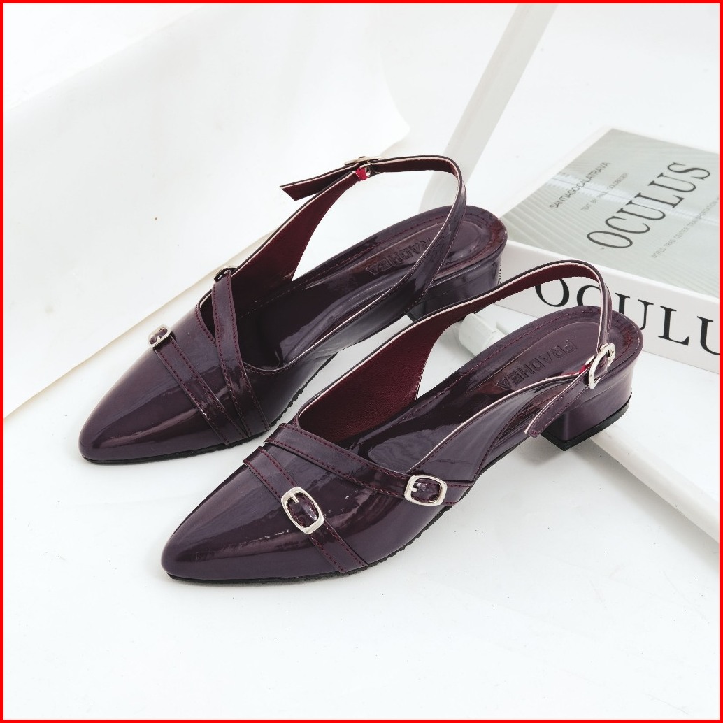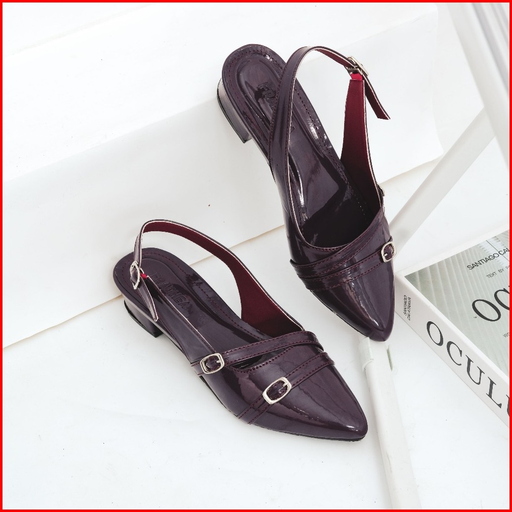 Sepatu Sandal High Heels Mules Wanita Slop Tali Belakang Hak 3 Cm Elegan Kekinian Terbaru Ib 23