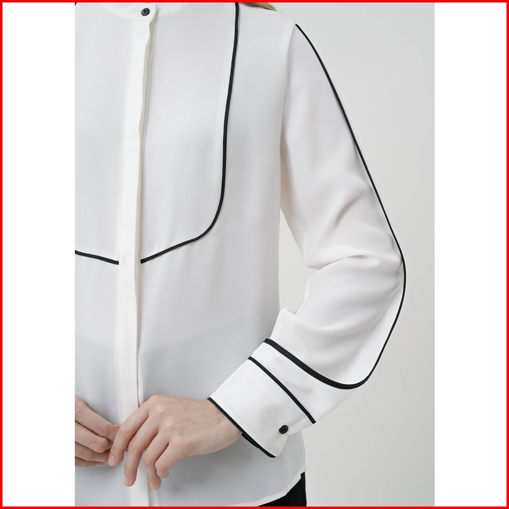 Invio Paula Contrast-trim Blouse Broken White Kemeja Wanita
