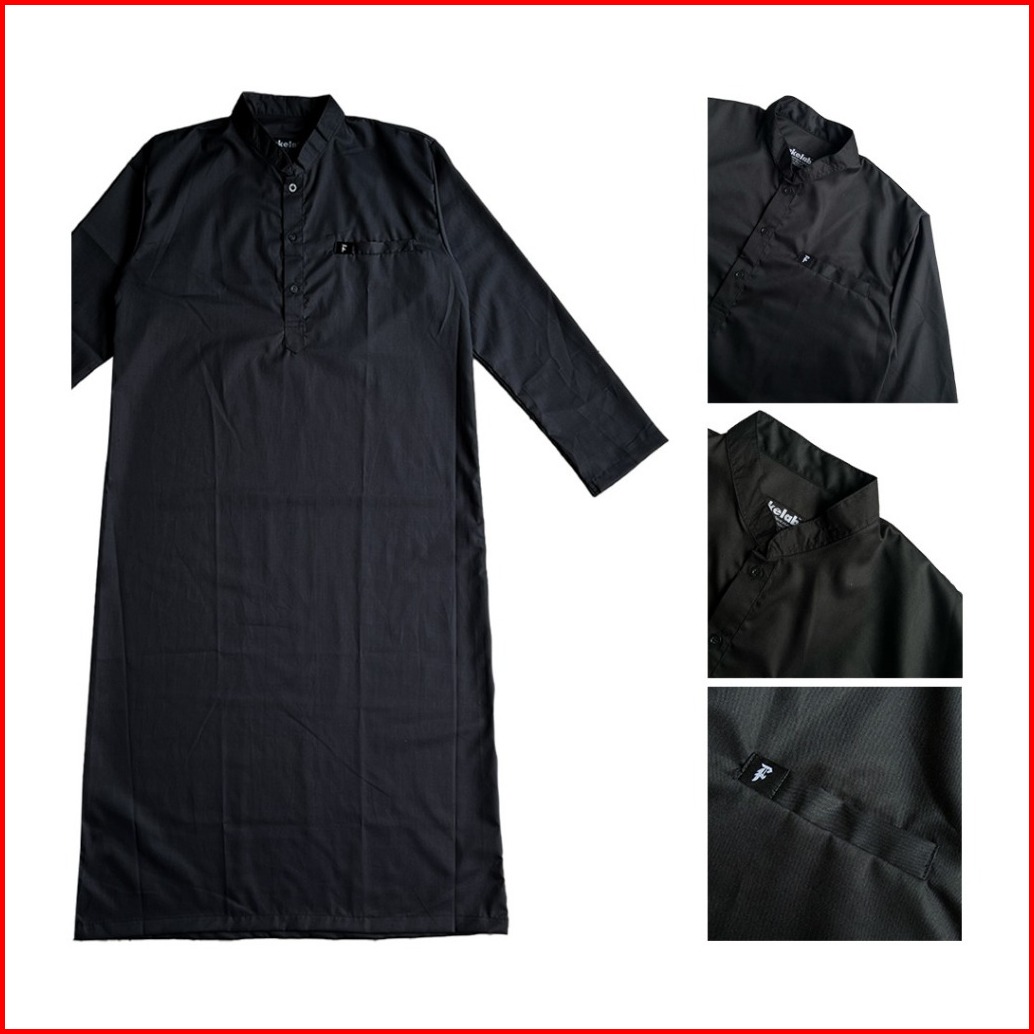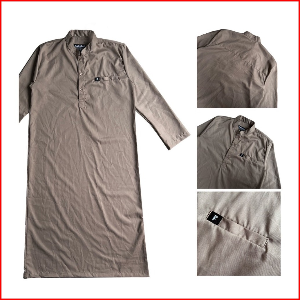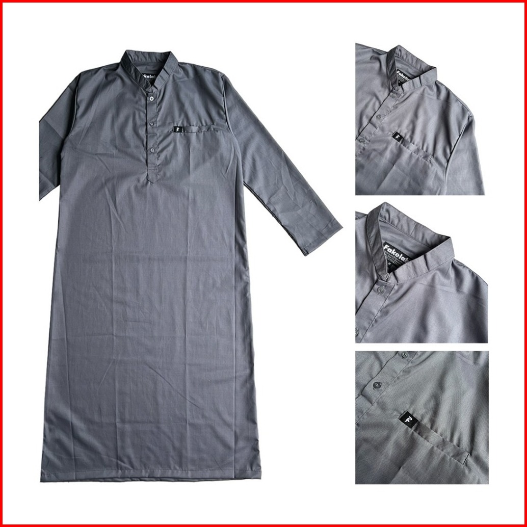 Fakelab Gamis Raya Hitam Abu Krem Putih Jubah Pria Muslim Panjang Kancing Thawb Laki-laki Longgar