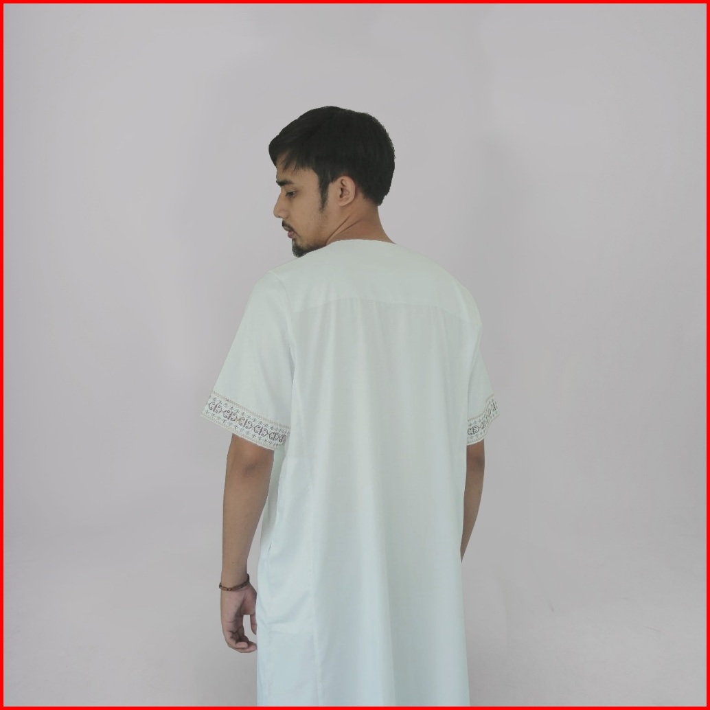 Khaf97 Jubah Panjang Imtiyaz Lengan Pendek Pria Dewasa Fashion Muslim Laki-laki Warna Putih Motif Bordir Bahan Katun Mad