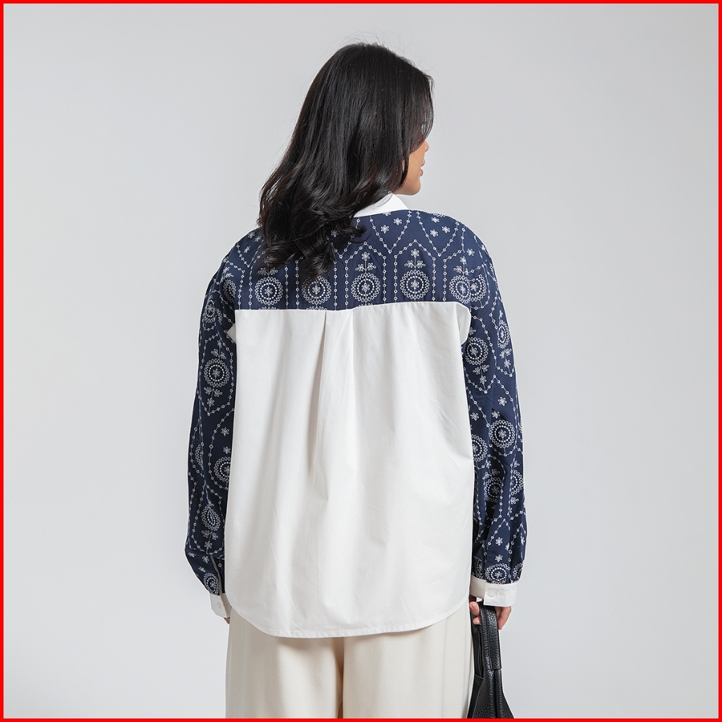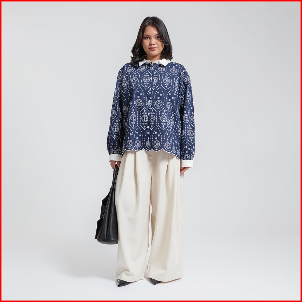 Cottonink - Atasan Kemeja Wanita Navy Embroidered Veda Fallwinter2025