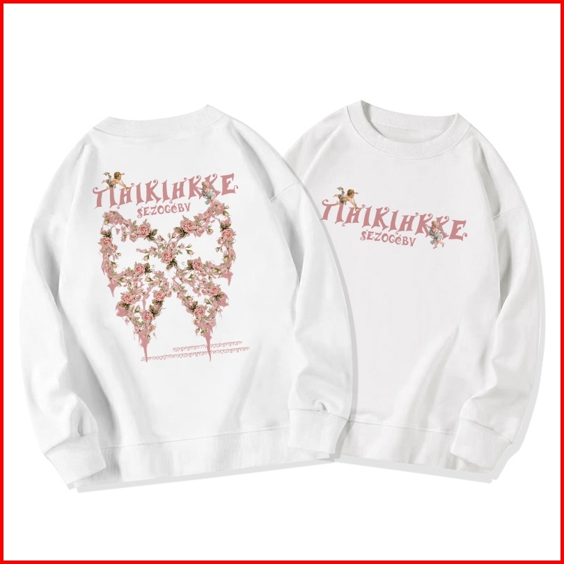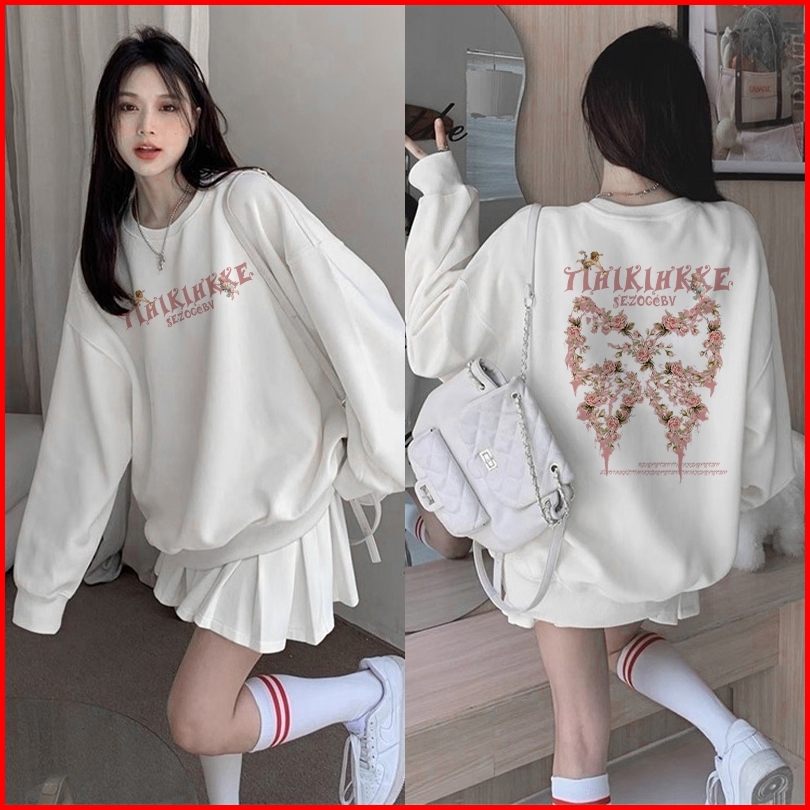 Sweater Oversize Wanita Lengan Panjang Versi Korea Cetakan Bunga Kecil Berwarna Merah Muda Baju Sweater Wanita Korean St