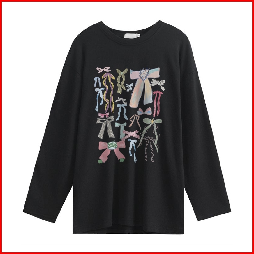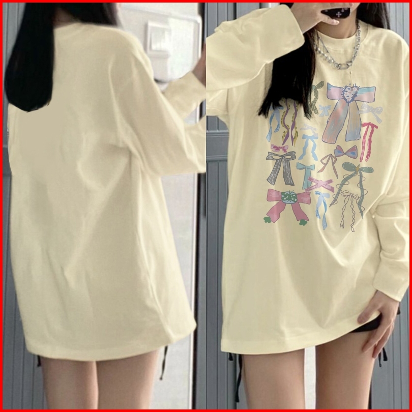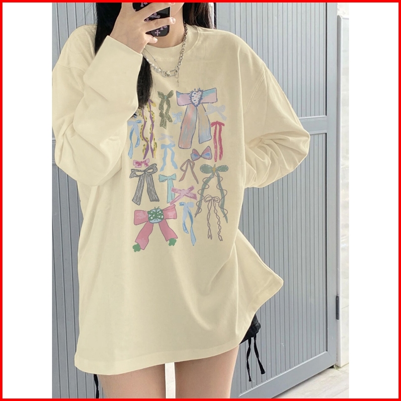 Kaos Oversize Lengan Panjang Wanita Many Beautiful Bows Korean Style Baju Kaos Lengan Panjang Wanita Terbaru Kekinian At