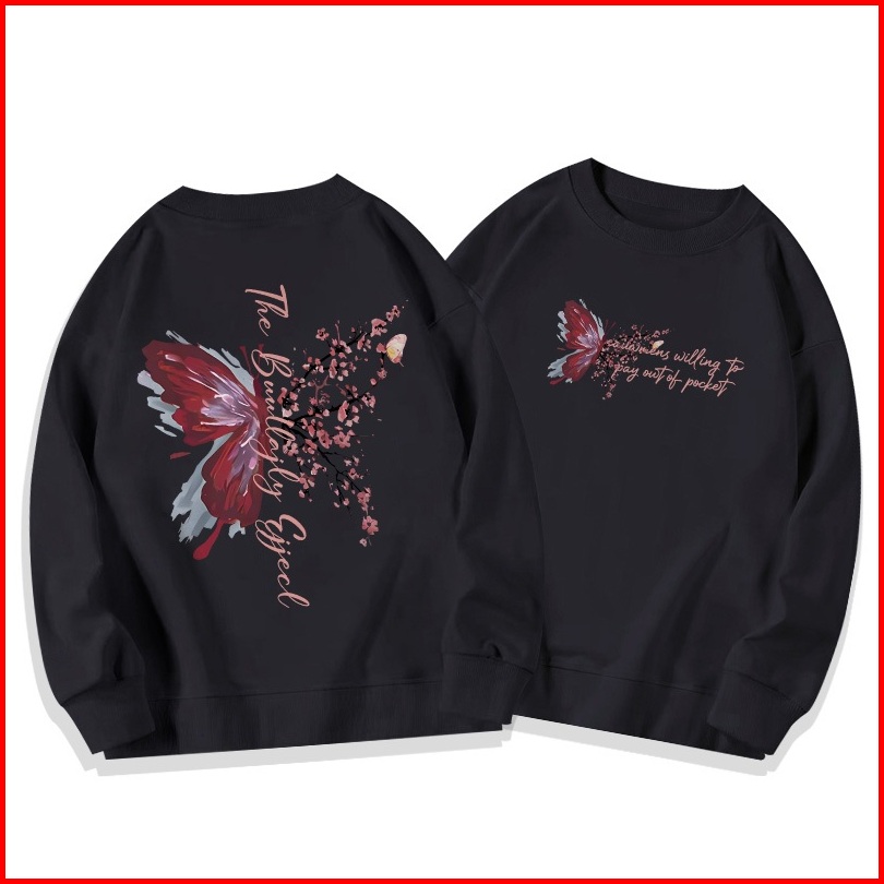 Sweater Oversize Wanita Lengan Panjang Versi Korea Cetakan Graffiti Butterfly Branches Baju Sweater Wanita Korean Style