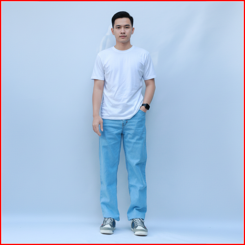 Celana Jeans Reguler Pria Panjang Standar Basic Biru Muda Model Lurus Denim Size 27-38