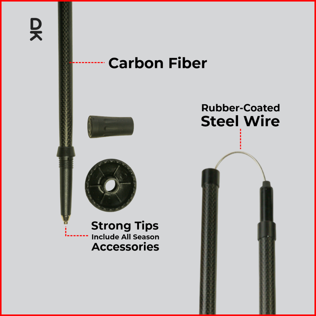 Duraking Carbon Trekking Pole Foldable 110 115 Cm - Carbon Lightweight Quick Release Strap Anti Slip
