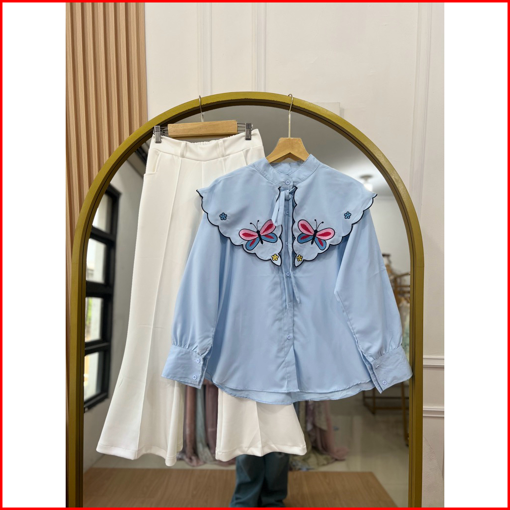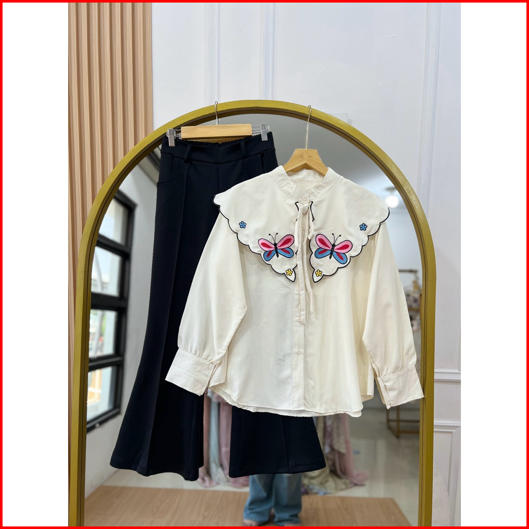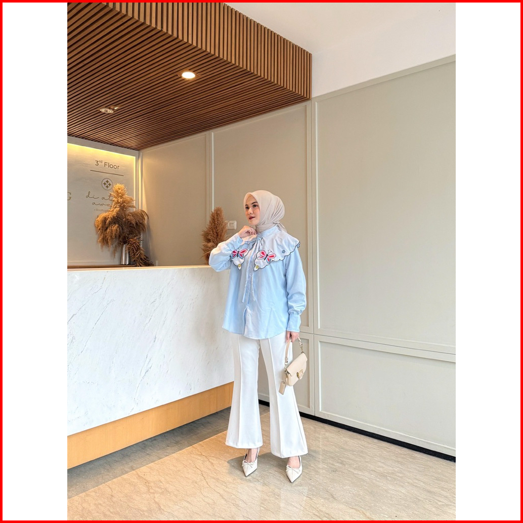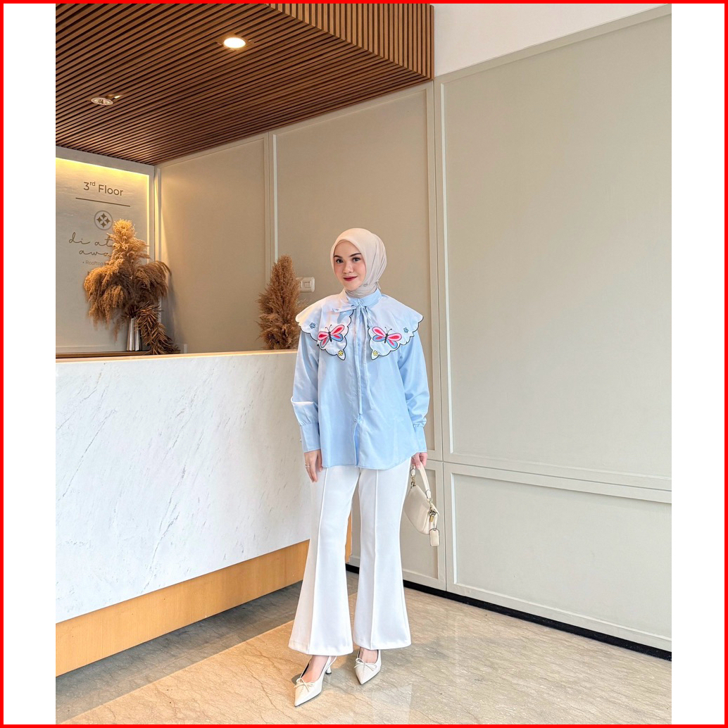 One Set Blouse Dan Celana Flare Wanita Katun Bordir
