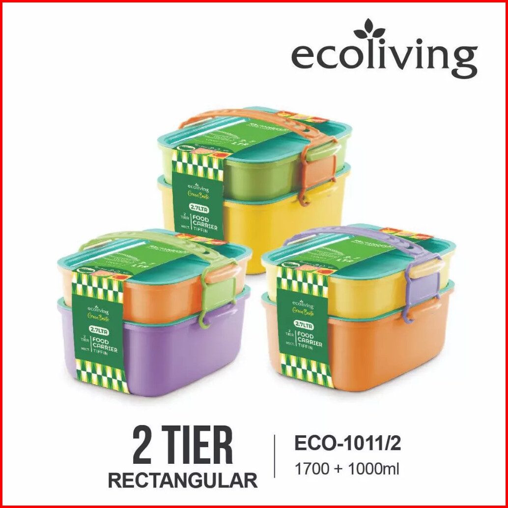 Eplas X Eco Living Green Bento Lunch Box Set 2 3 Tingkat Kotak Makan Sehat Praktis Colorful Bpa Free Food Grade Eco-1011
