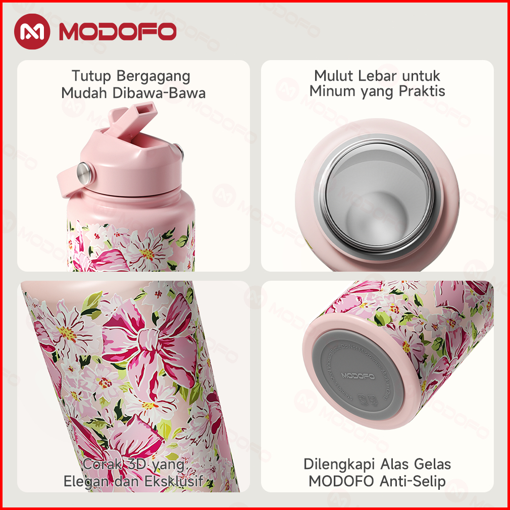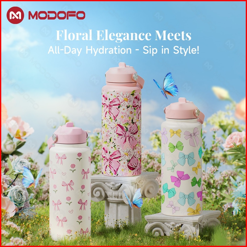 Modofo Tumbler Stainless Koleksi Kupu-kupu 1000ml Lucu Botol Minum Aesthetic Tumbler Tahan Panas Dan Dingin 24 Jam