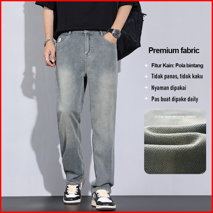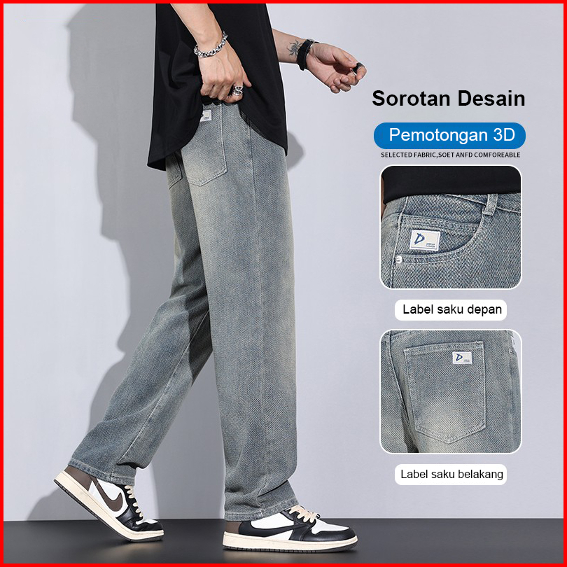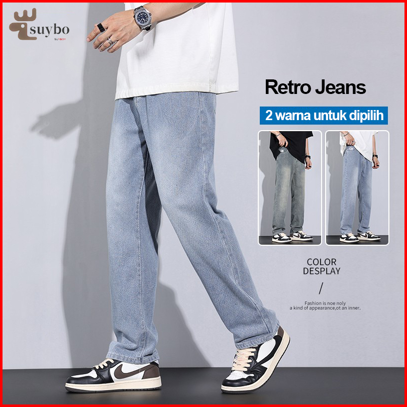 Suyboy Celana Jeans Pria Amerika Baggy Nyaman Retro Jeans Skena Kekinian Denim Baggy Jeans Pria