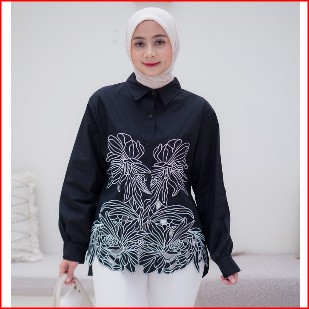 Kemeja Katun Bordir Mewah Blouse Wanita