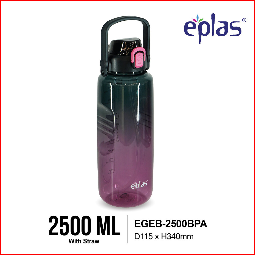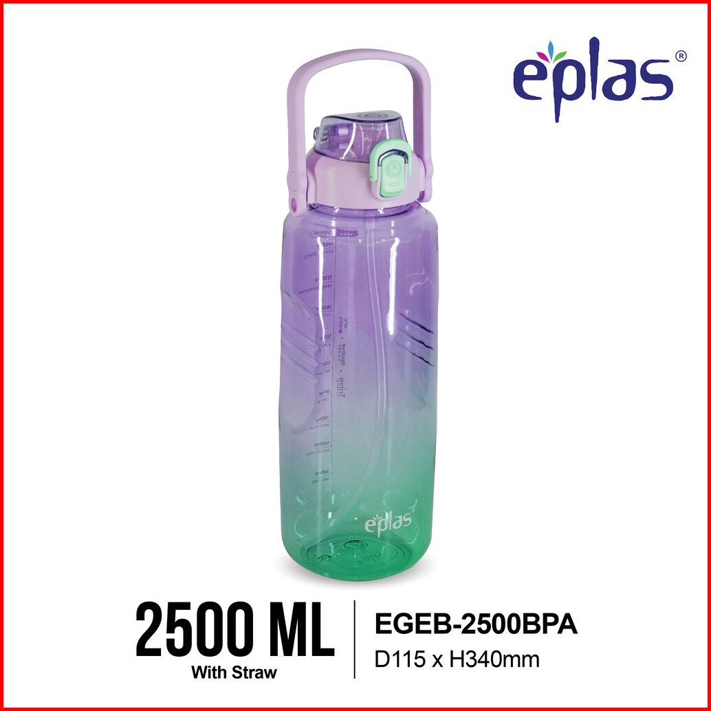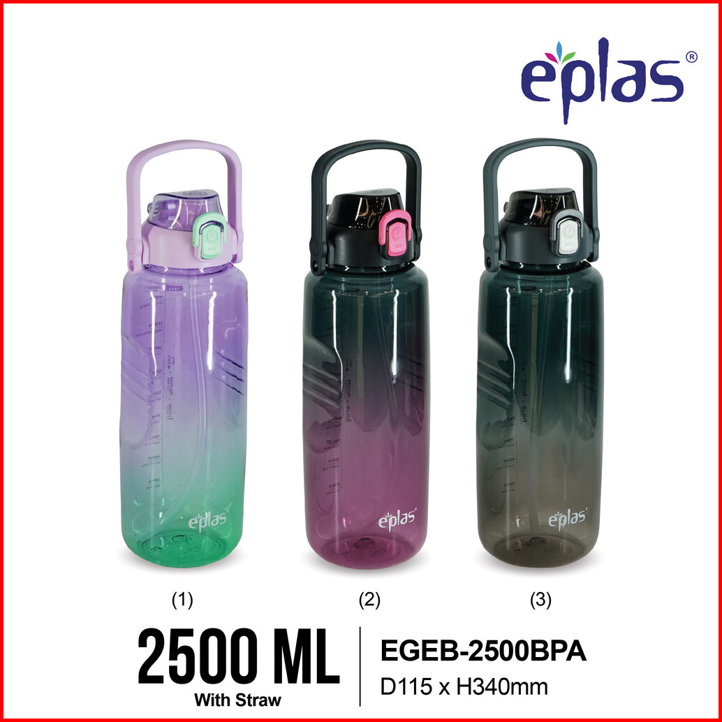 Eplas Botol Minum Tritan Modern 2500ml One Touch Multicolour Water Bottle With Straw Handle Bpa Free Egeb-2500