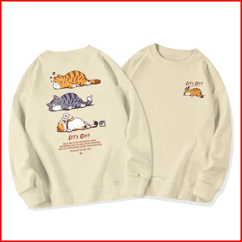 Sweater Oversize Wanita Lengan Panjang Versi Korea Cetakan Anak Kucing Kartun Lucu Baju Sweater Wanita Korean Style Lett