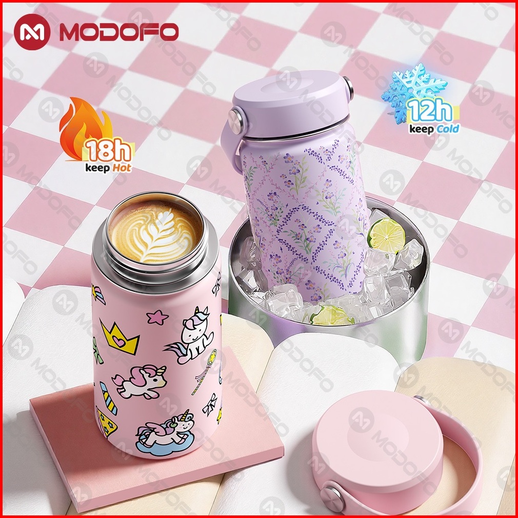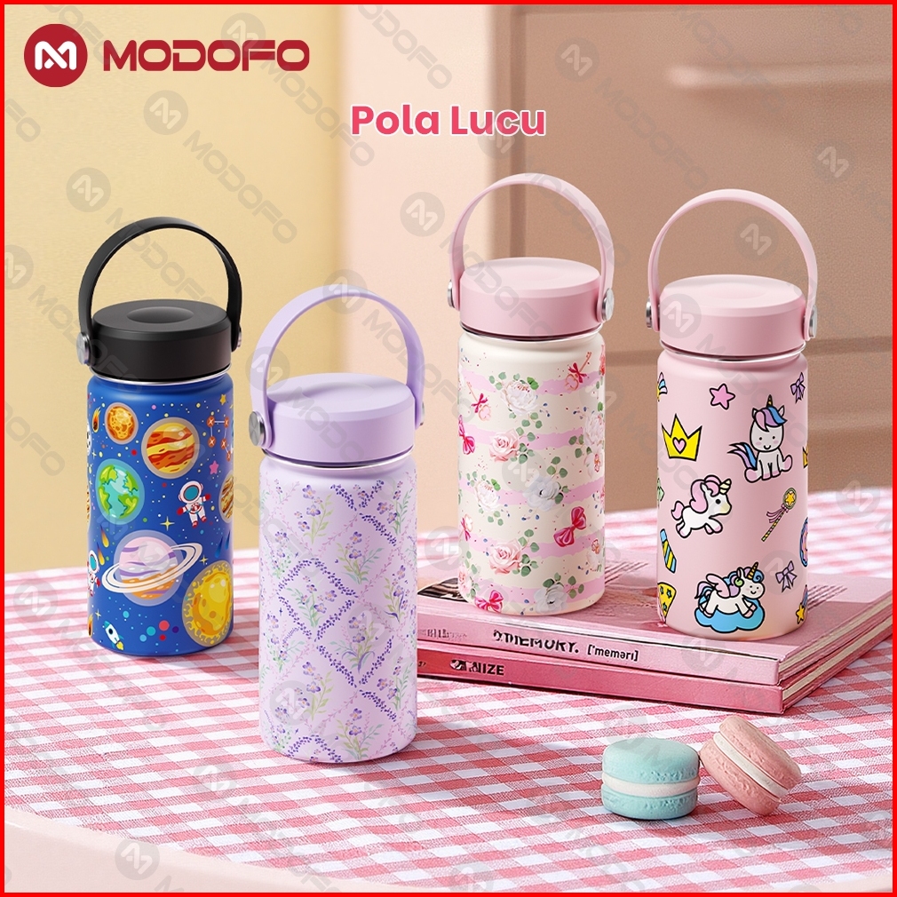 Modofo Tumbler Lucu Anti Bocor Botol Minum Anak - 400ml 304 Stainless Steel Desain Aesthetic Premium