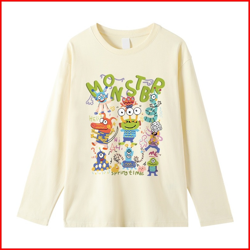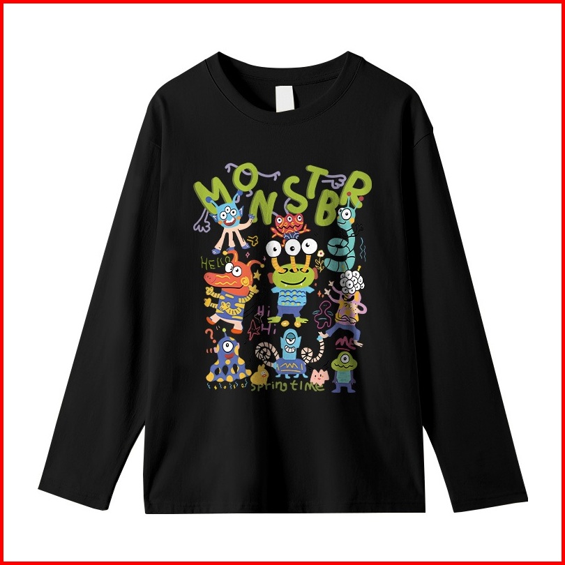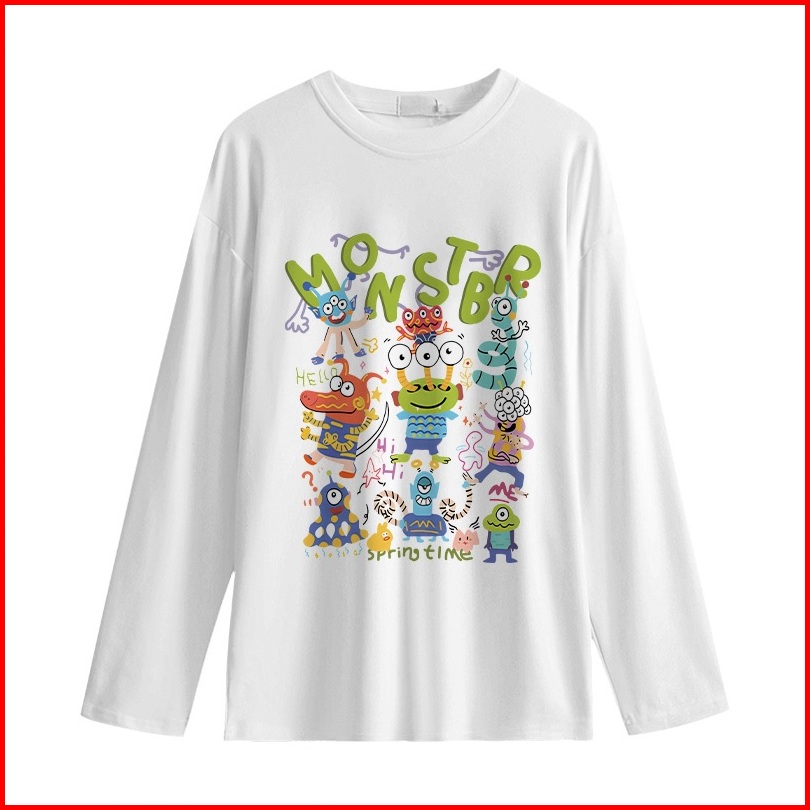 Kaos Oversize Lengan Panjang Wanita Cetakan Monster Kartun Kreatif Korean Style Baju Kaos Lengan Panjang Wanita Terbaru