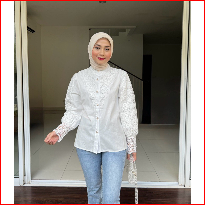 Haven Butiq - Kemeja Katun Bordir Wanita Import