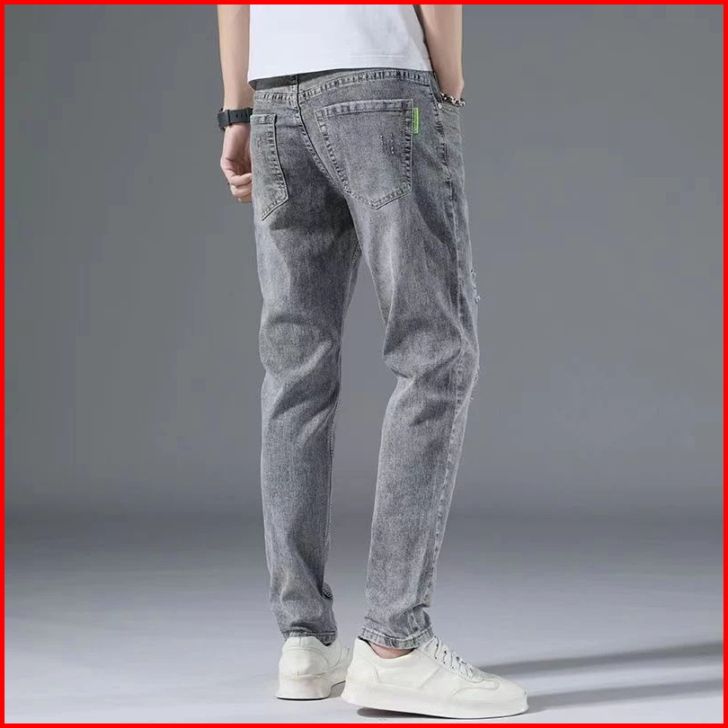 X-gent Celana Panjang Slim Fit Stretch Jeans Abu Sobek Pria Korean Style Ripped Slimfit Skinny Denim Cowok