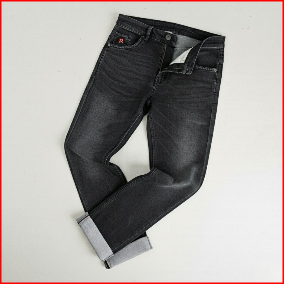 Rakerbe Denim Jeans Reguler Pria 13.5oz Accent Selvedge Stretch Washing Whisker Standar