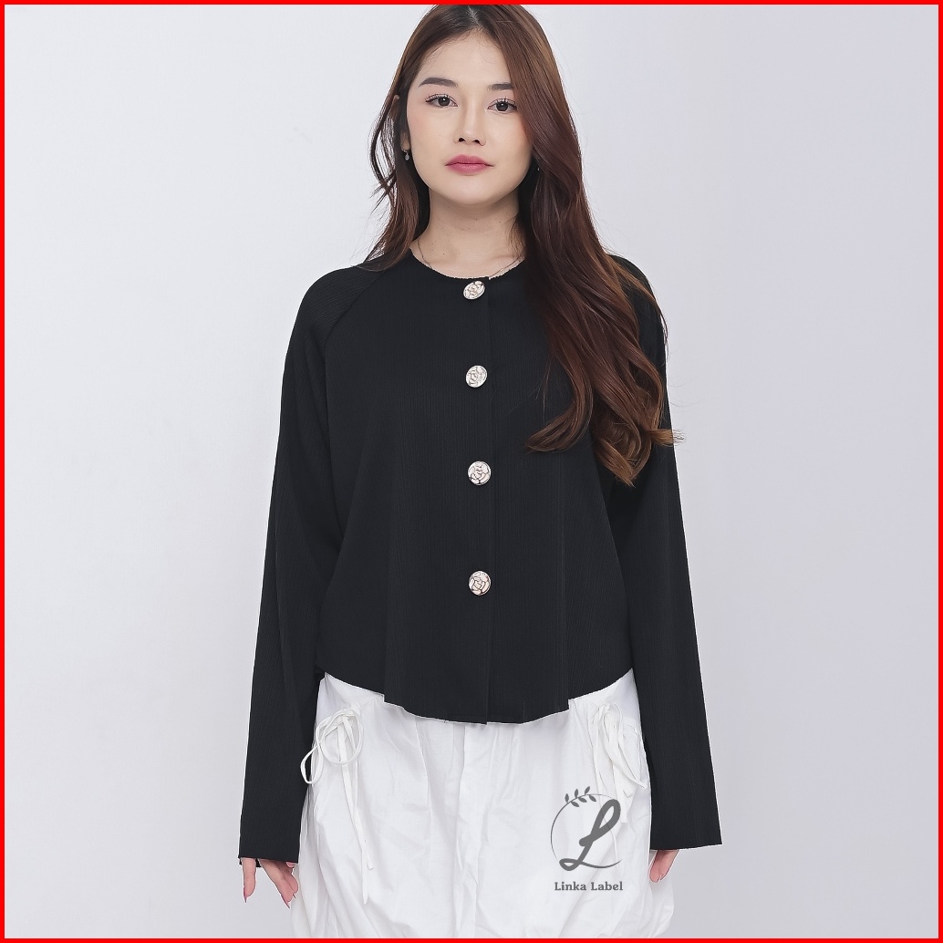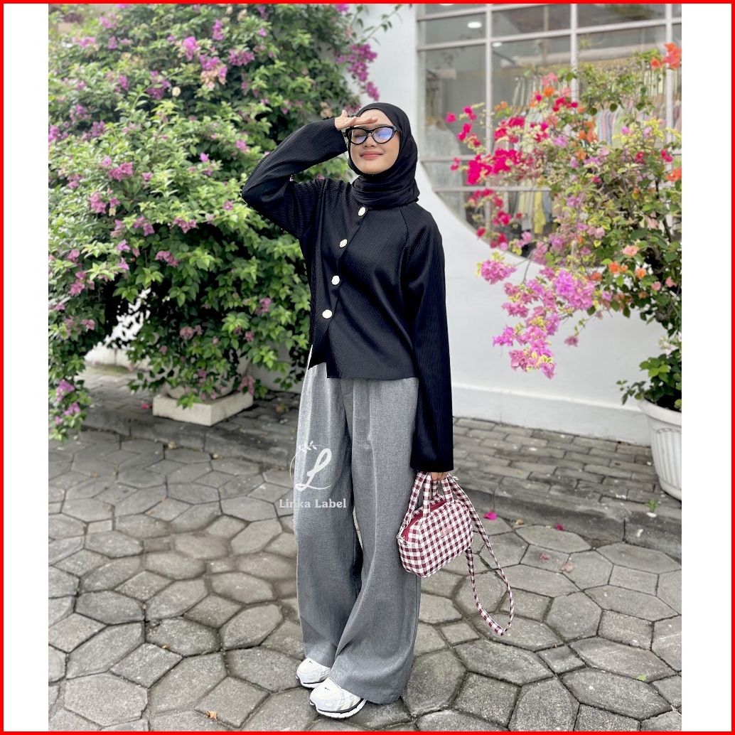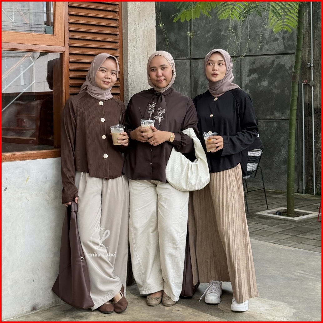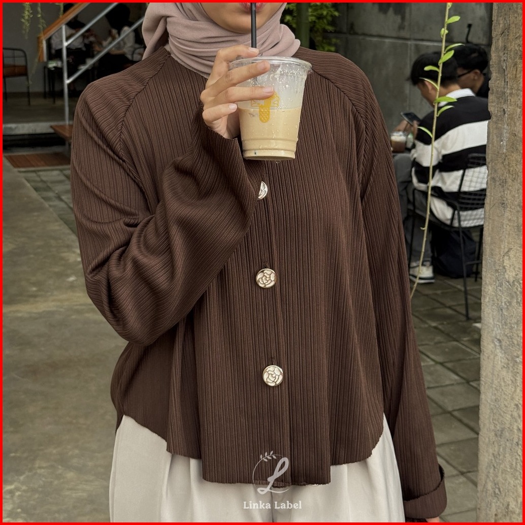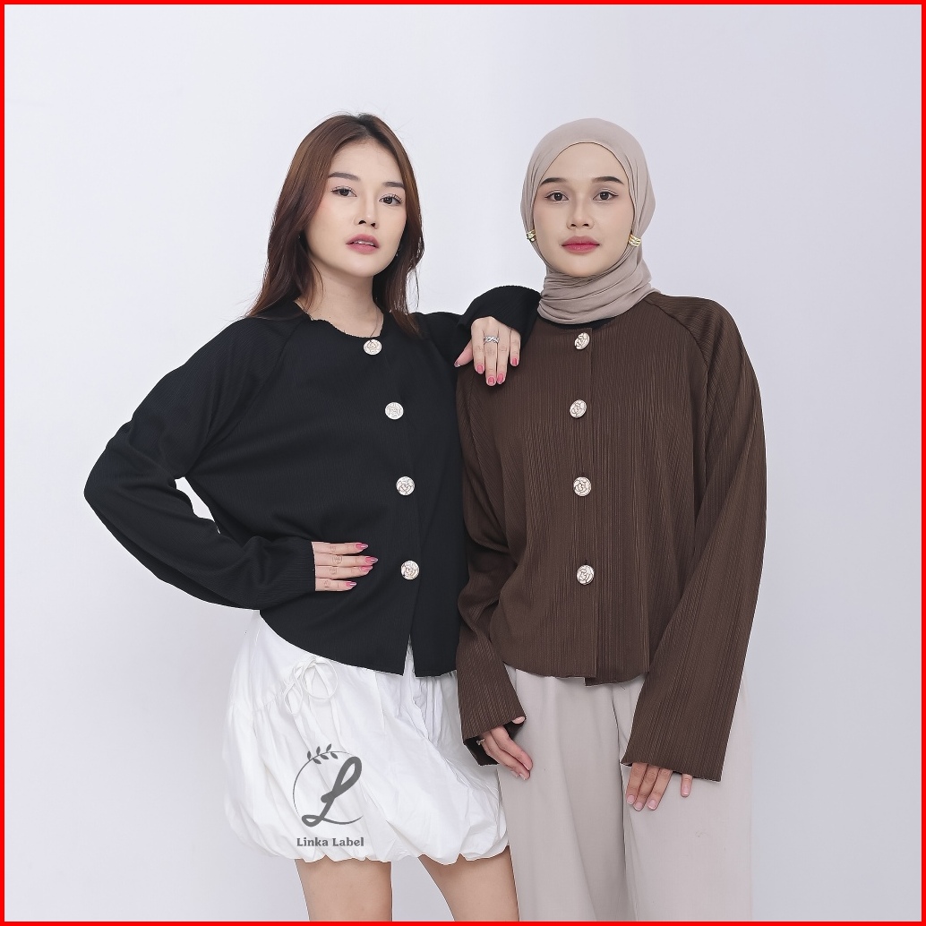 Linka - Rose Knit Top Atasan Knit Pleats Overlong Sleeve Outer Plisket Top Blus Knit Boxy
