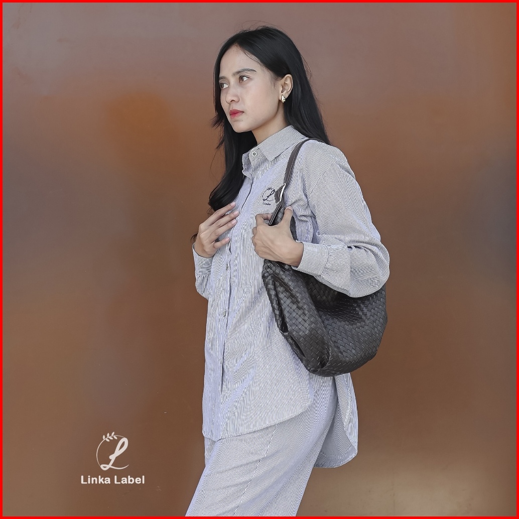 Linka Ola Oneset Stripe Set Kemeja Salur Stelan Kemeja Garis Kemeja Stripe Stripe Pants