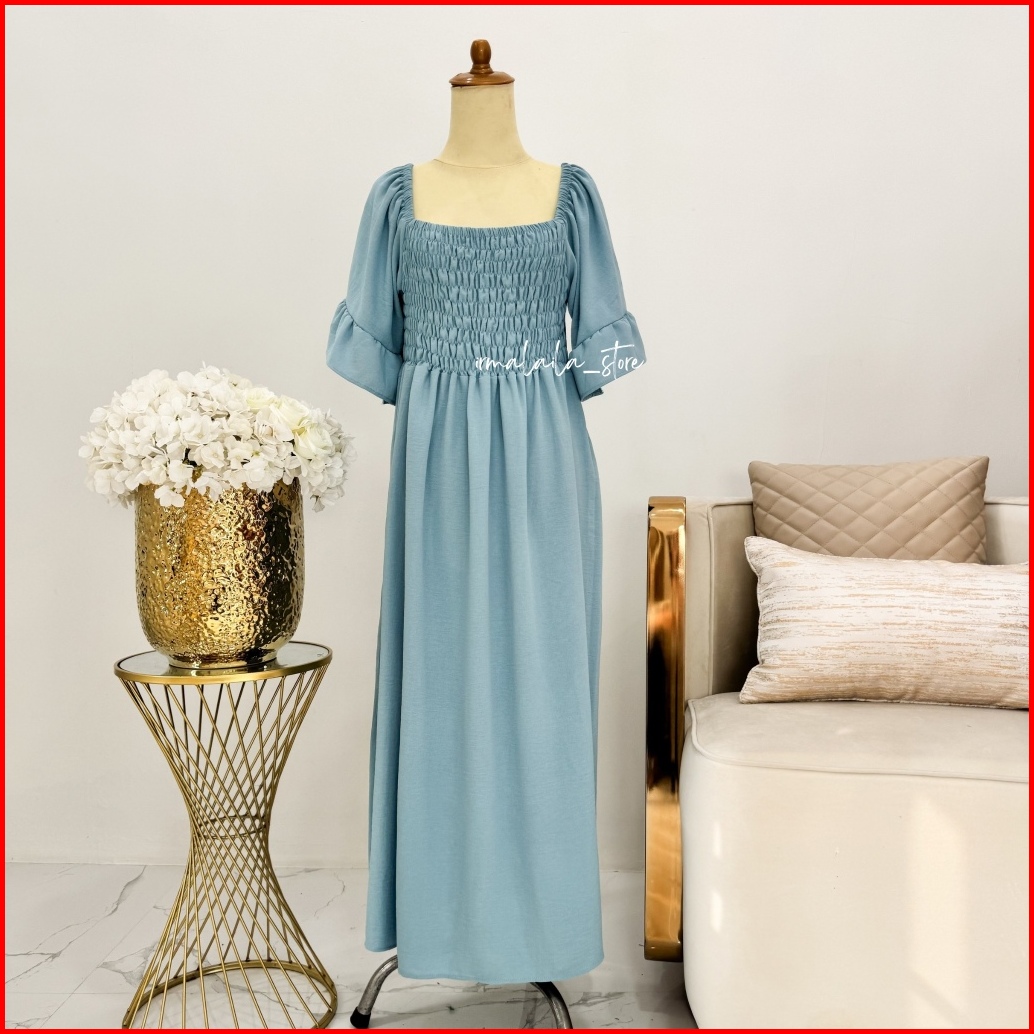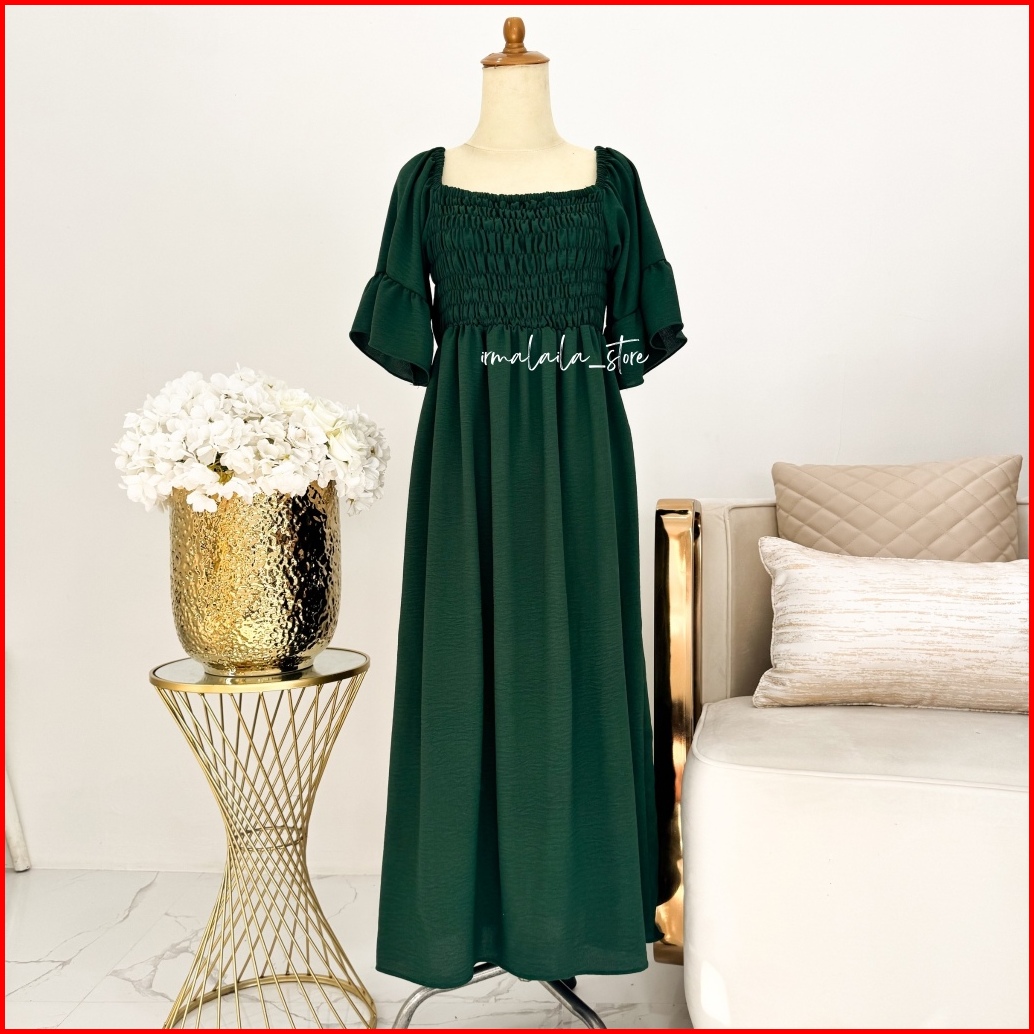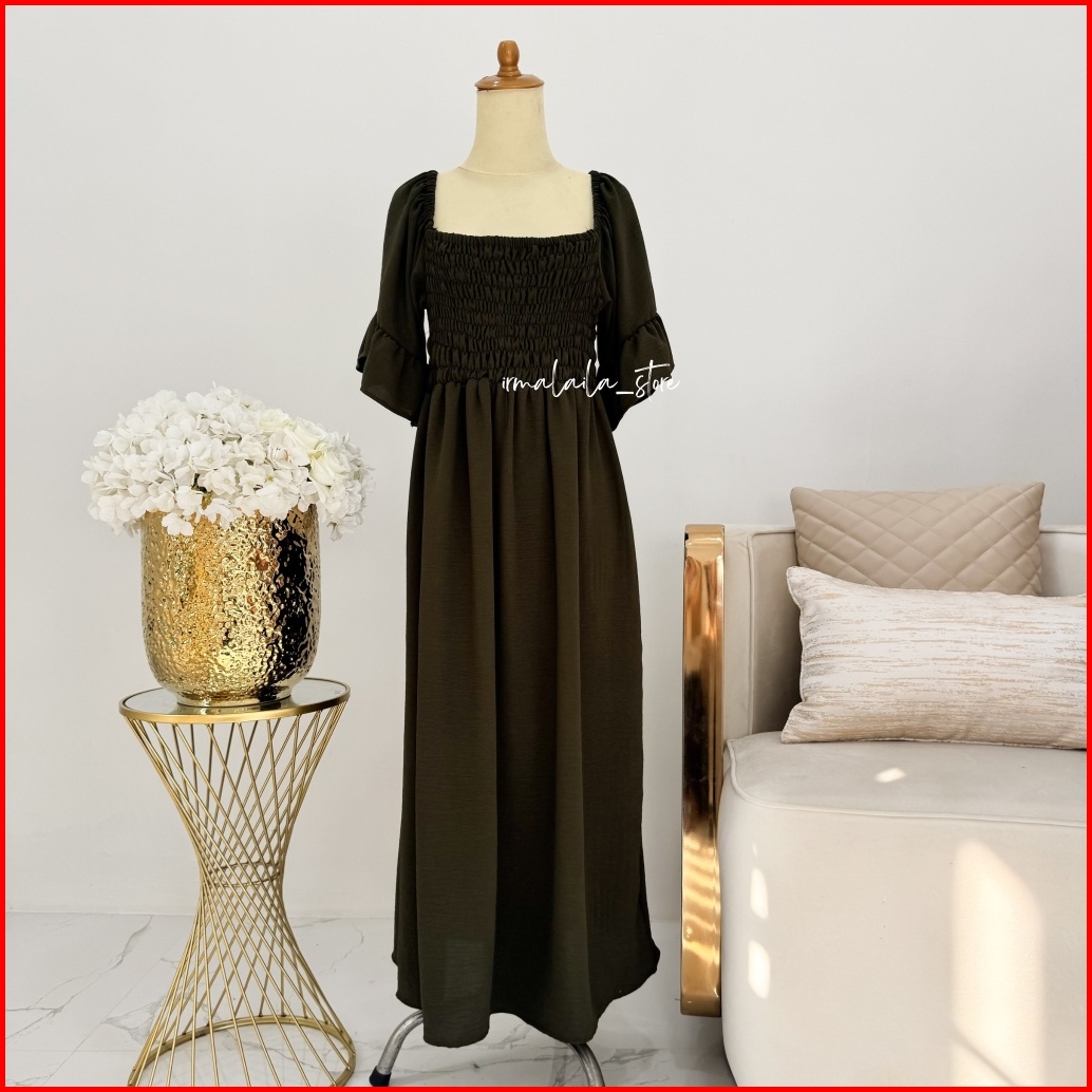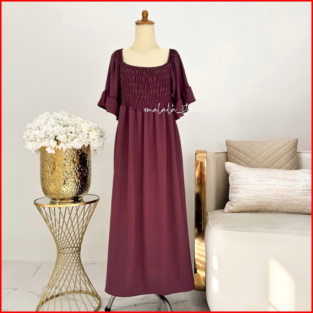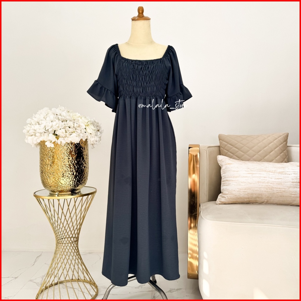 Irmalaila - Shabrina Smocked Dress Wanita Kekinian Dewasa Korean Style Dress Nyaman Cantik Elegan