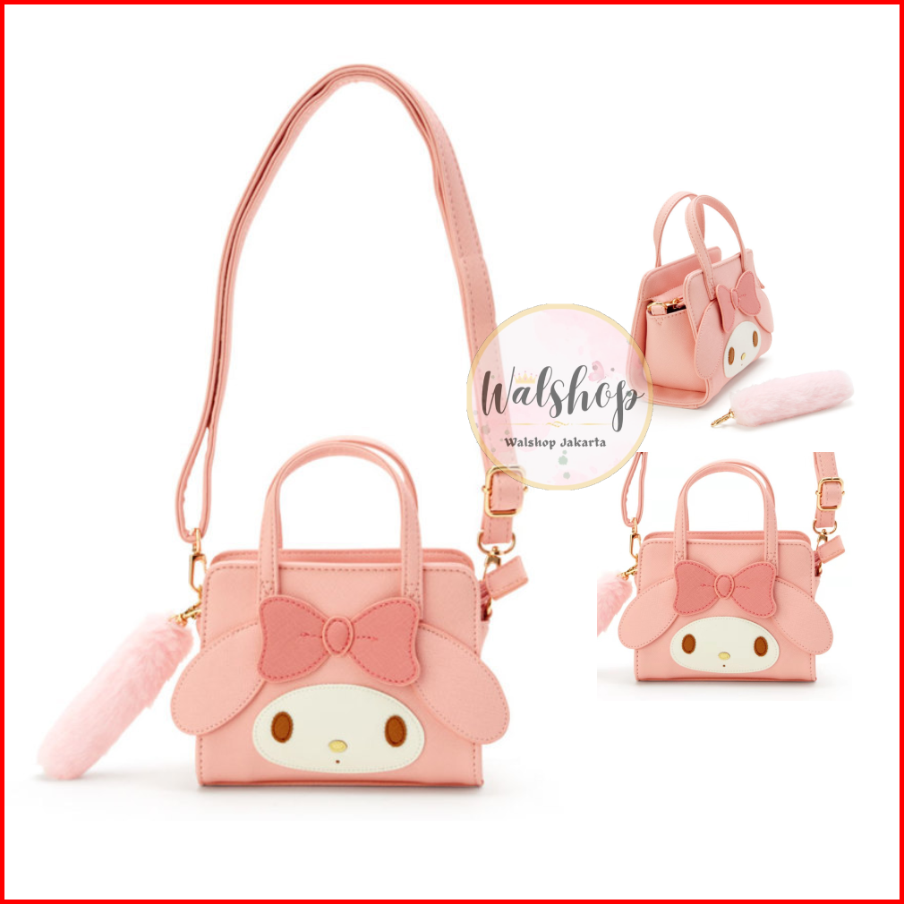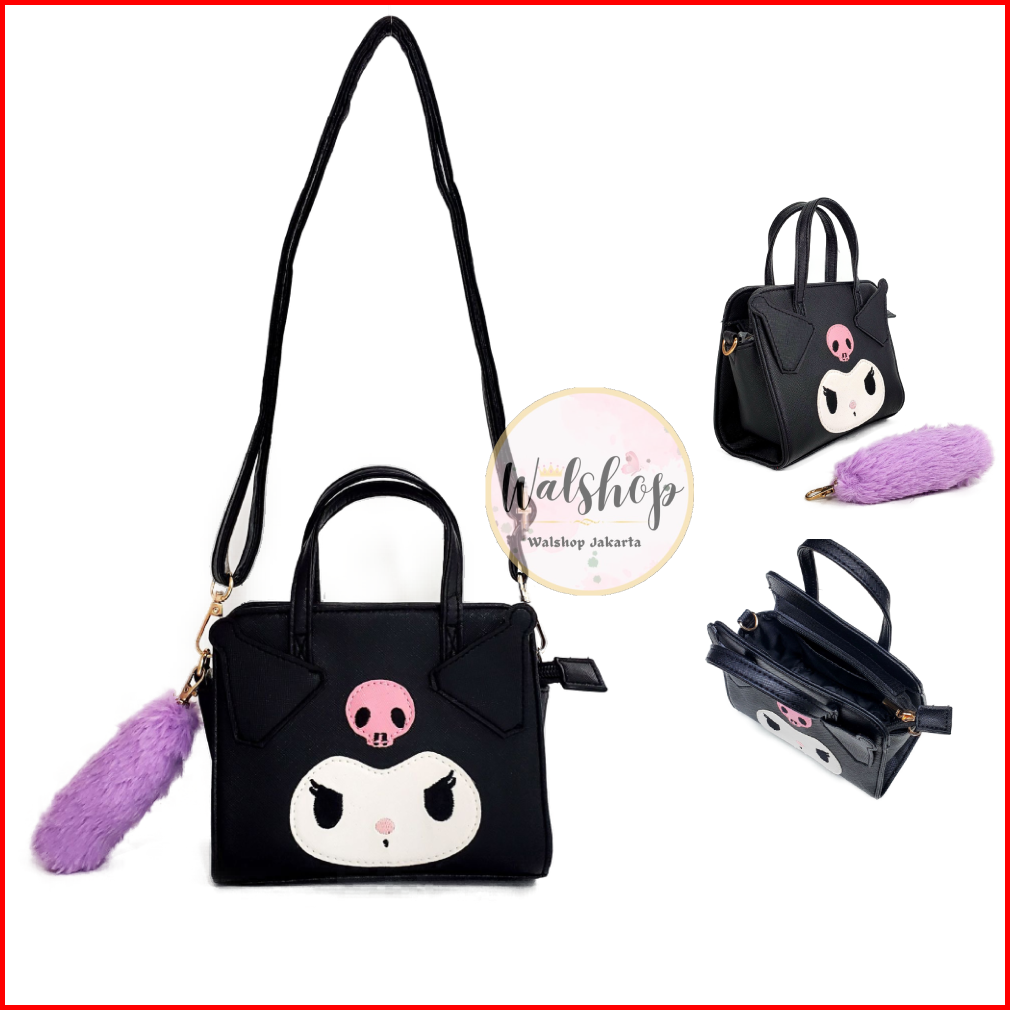Walshop - Tas Slempang Tenteng Sanrio Kuromi Melody Cinnamoroll Pompompurin Free Gantungan Kunci Bulu - Tps005