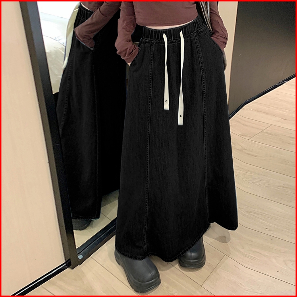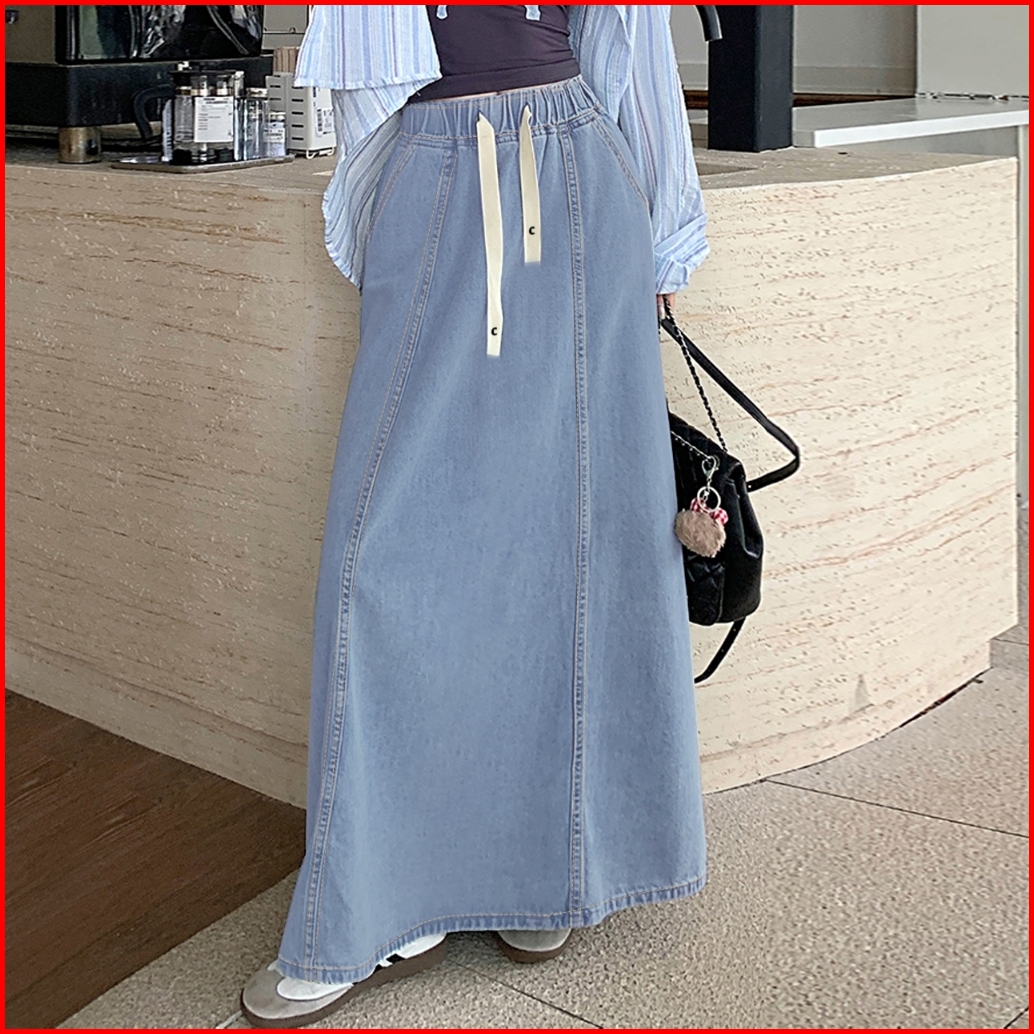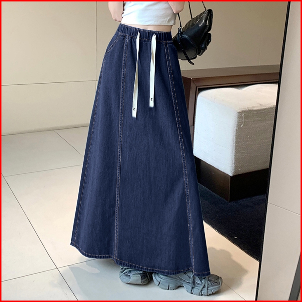 Skirts For Wanita Korean Style Loose Simple A-line Rok Elastic Waist Denim Skirts