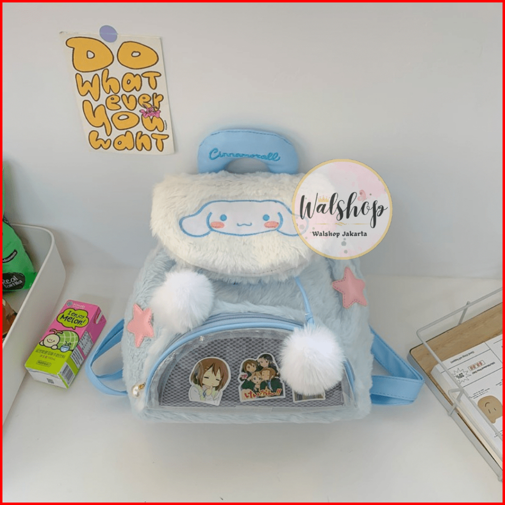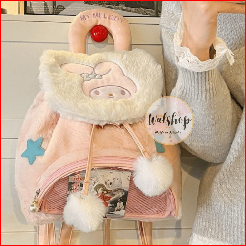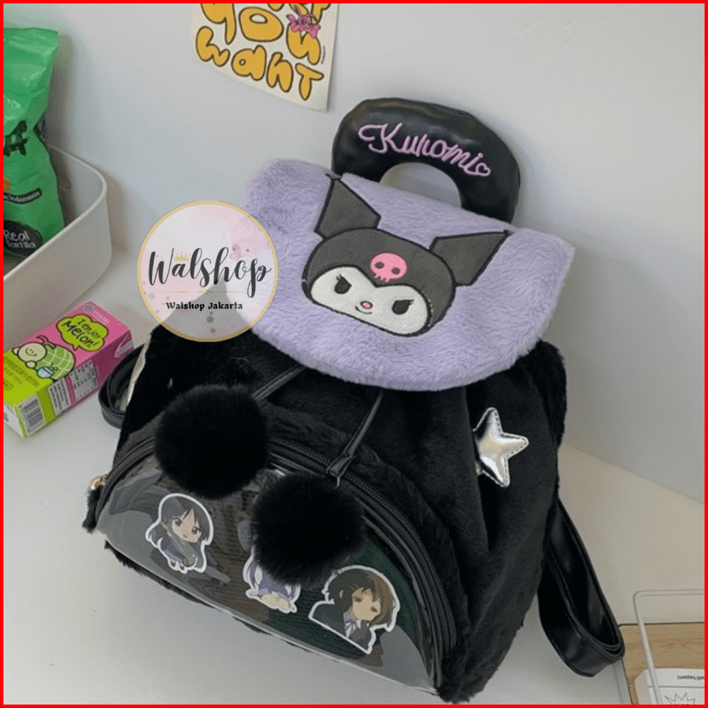 Walshop - Tas Ransel Premium Bulu Sanrio Melody Kuromi Cinnamoroll Tutup Depan Serut Transparan - Tbs014