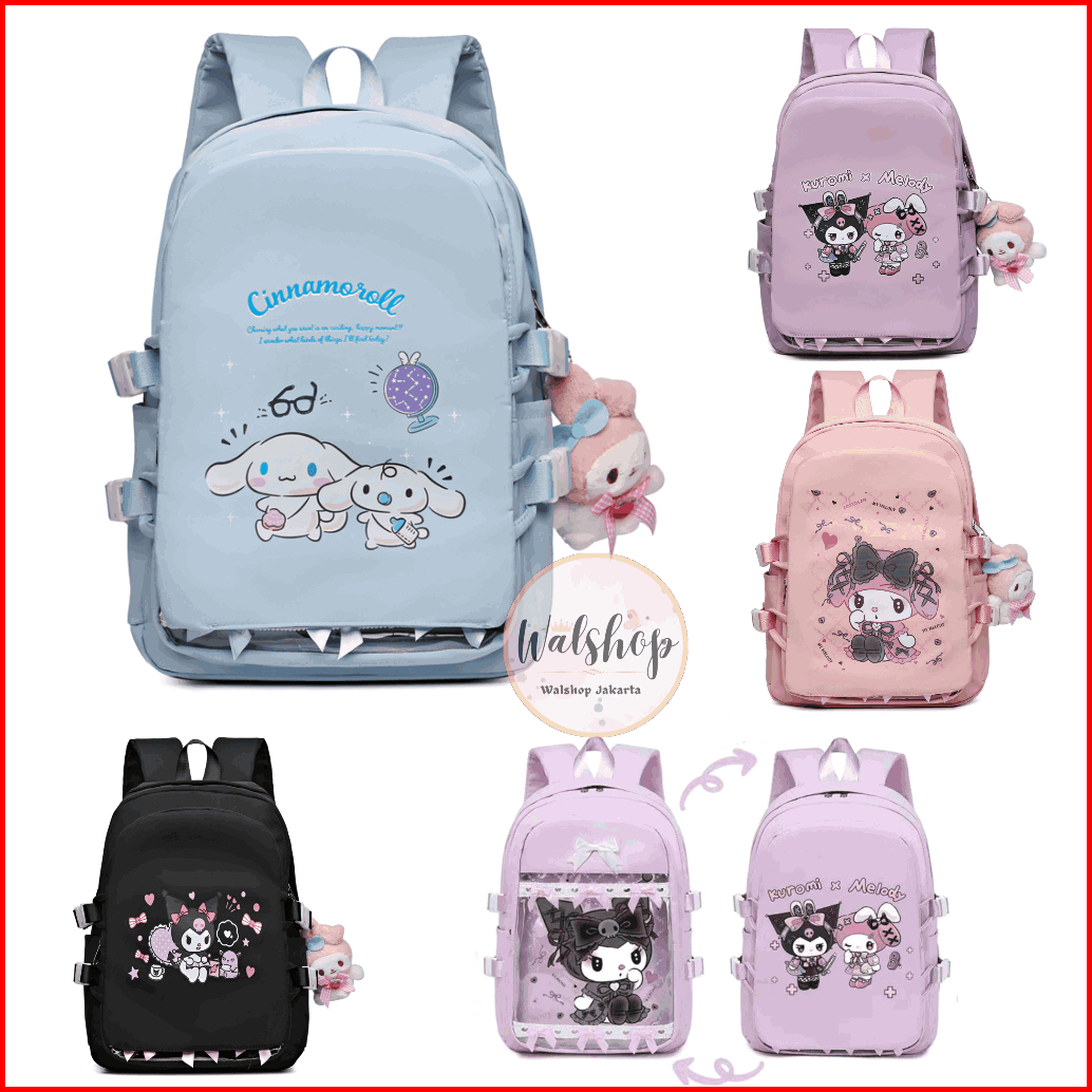 Walshop - Tas Ransel Sanrio Kuromi Melody Cinnamoroll 2 Gambar - Tps038
