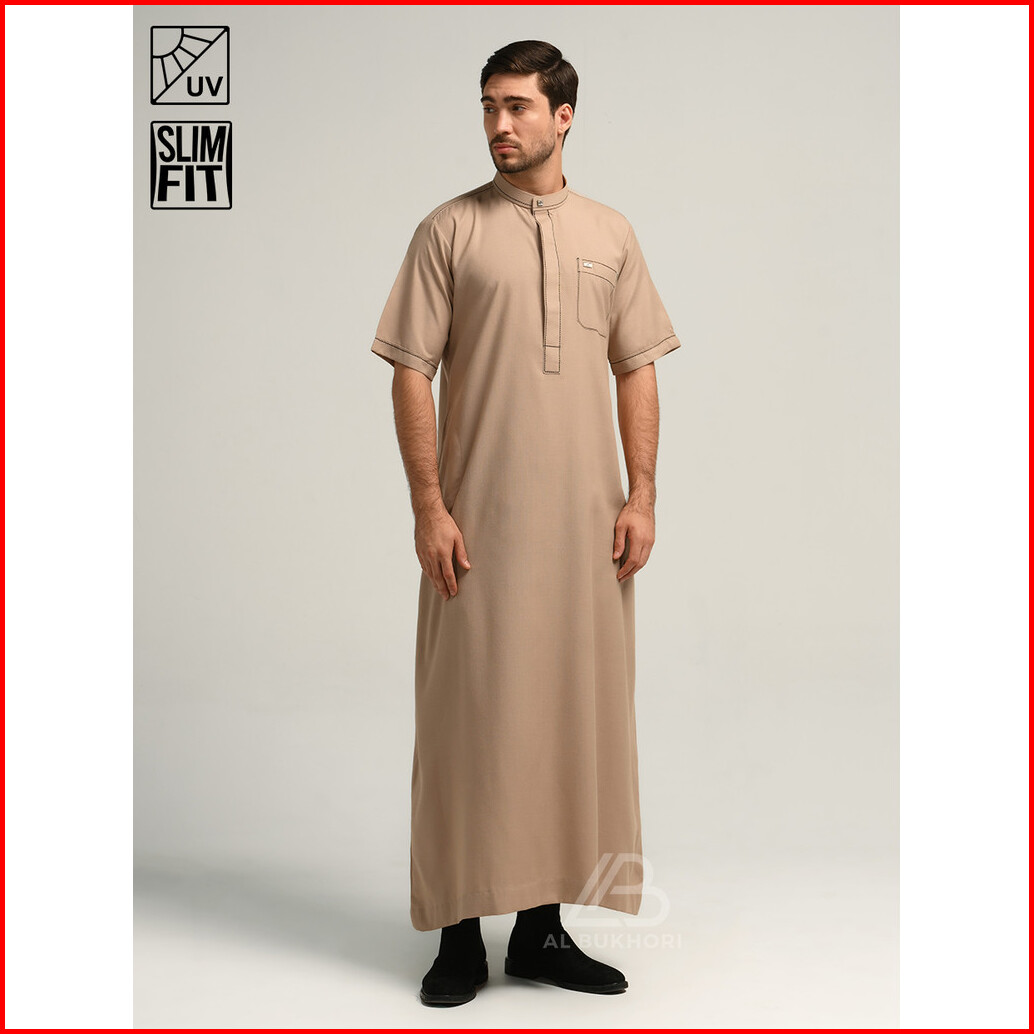 Al Bukhori - Anti Uv Jubah Gamis Thobe Slimfit Pria Dewasa Premium Lengan Pendek - Jubah Suhail