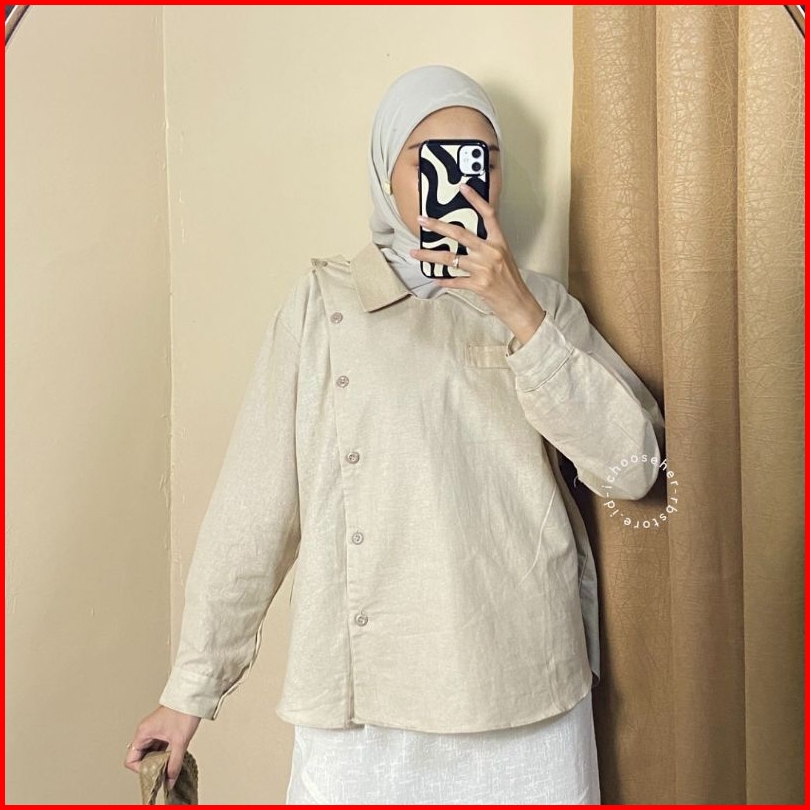 Shami Shirt Linen Oversize Atasan Wanita Terbaru