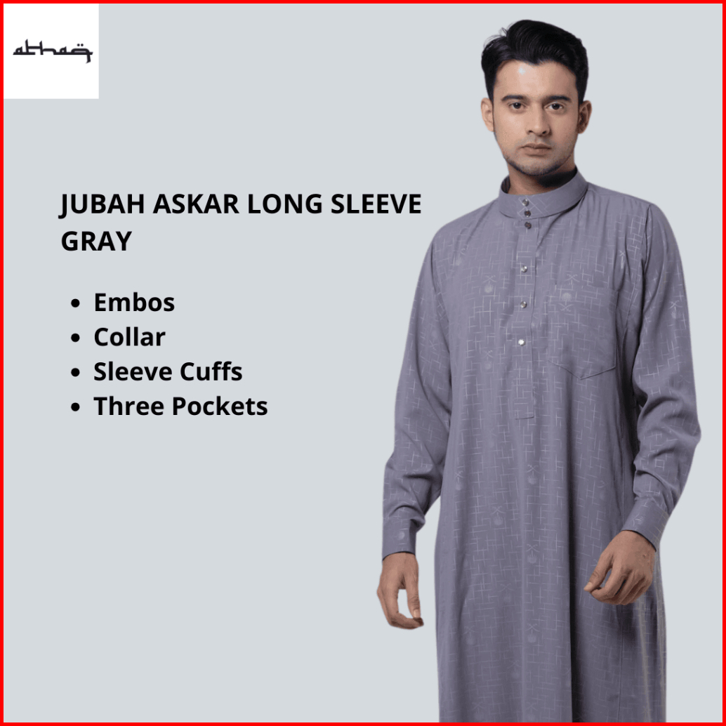 Al Haq Jubah Gamis Pria Jubah Premium Muslim Saudi Umrah Haji Motif Embos Siluit Reguller Askar Putih Abu Hitam